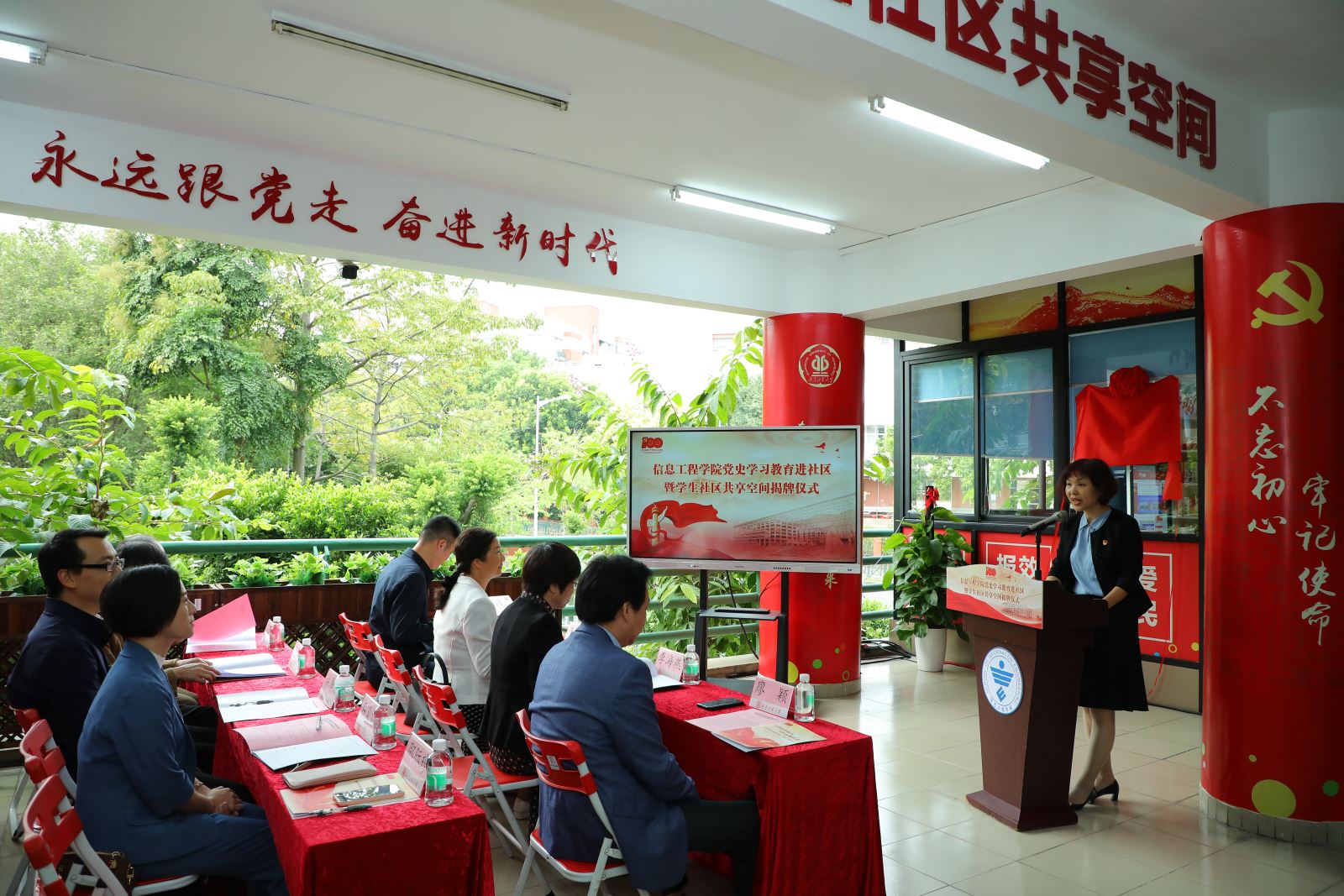 为深入推进党史学习教育,扎实做好学生党建与思想政治教育工作,11月17日下午,广工信息工程学院举行党史学习教育进社区暨学生社区共享空间揭牌仪式。省委教育工委党史学习教育巡回指导组第五组组长李海燕和成员一行,8xbet网党委副书记朱蔚蔚,党委常委、宣传部部长张育广,仲恺农业工程学院学工部、信息科学与技术学院负责人,学校组织部、学工部负责人等出席仪式;学院副书记、辅导员和学生党员代表也参加了活动。