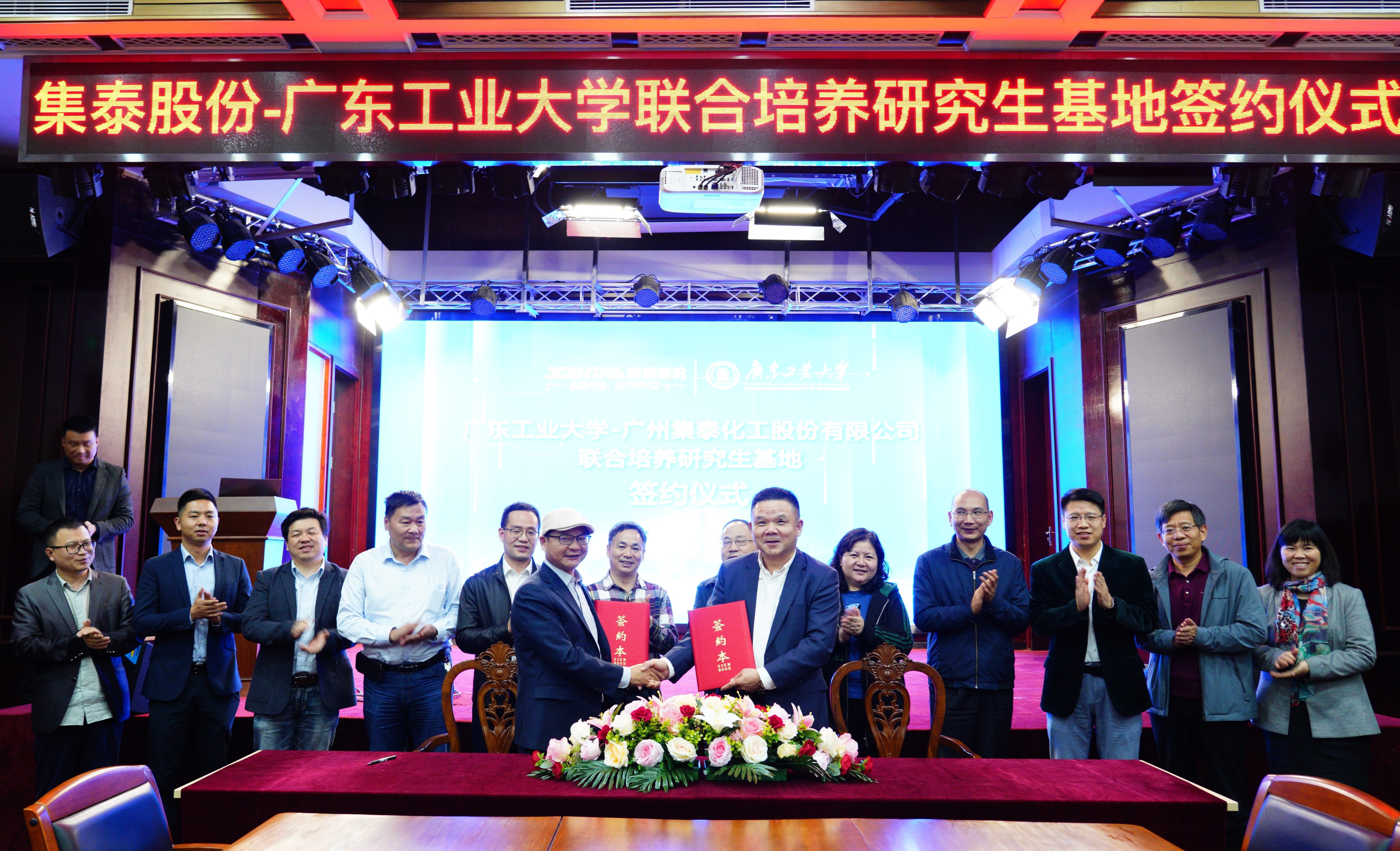 11月22日下午,8xbet网与广州集泰化工股份有限公司联合培养研究生基地签约暨揭牌仪式在广州集泰股份有限公司举行。学校党委常委、副校长、研究生院院长杜承铭,研究生院及相关学院负责人,广州集泰化工股份有限公司负责人,广工校友代表等共同出席了仪式。