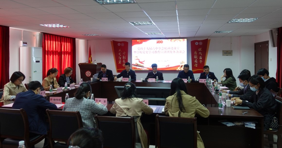 8xbet网通过多种形式深入学习党的十九届六中全会精神的重大意义和深刻内涵,并将理论学习与教学、科研、宣传阐释等紧密结合,扎实推进十九届六中全会精神“三进”工作。11月24日,学校在龙洞校区举行党的十九届六中全会精神进课堂暨学校党史学习教育宣讲团集体备课会。学校党委书记胡钦太,学校党委常委、宣传部部长张育广,马克思主义学院全体党员和思政课教师、全体研究生参加了备课会,共同分享全会精神进课堂的教学经验,并就教学过程中的热点、重点、难点等问题进行广泛讨论与交流。