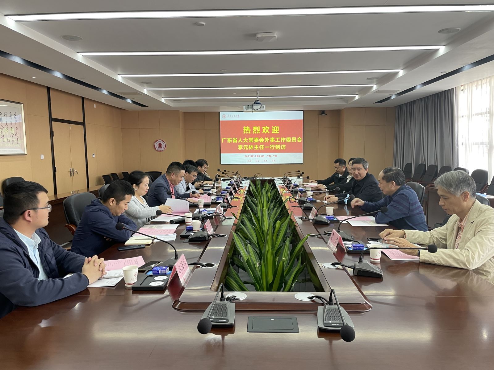 11月26日下午,广东省人大常委会外事工作委员会主任李元林一行到我校调研指导工作。学校党委常委、副校长、中国法学会香港基本法澳门基本法研究会副会长杜承铭对李元林主任一行表示热烈欢迎,并作了《粤港澳大湾区建设的法治保障问题》主题报告。“学科提升工程”校级科研团队“数据法治与湾区治理研究团队”骨干成员汇报了各自研究领域及进展。科学研究管理部、政法学院相关负责人参加了座谈。