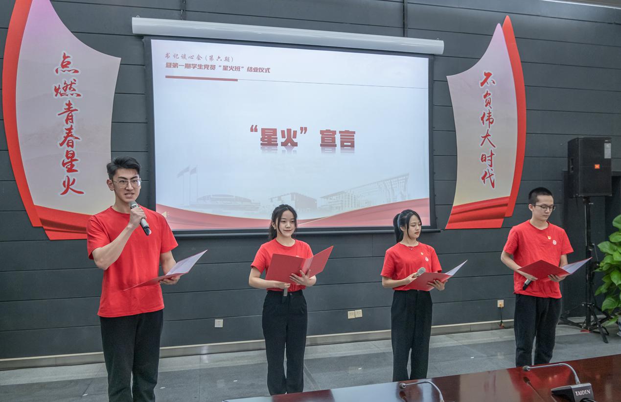 “新时代的我们,更要让这团‘星火’发出更大光亮,照亮更广阔的天地。”学员代表最后以诗朗诵的方式,发出了“星火”宣言,表示要继续成为信念坚定、志向远大的“火种”,永远以党的旗帜为旗帜、以党的方向为方向、以党的意志为意志,赓续党的红色血脉,弘扬党的优良传统,不负时代、不负韶华、不负期望,在新的赶考路上为党和人民争取更大的胜利和荣光。