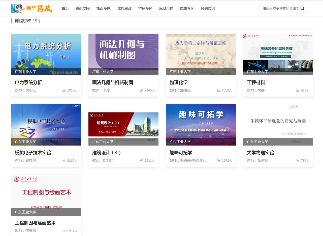 另讯,我校共有9项课程思政优秀案例在新华网新华思政平台上线展播,向全社会开放共享,入选案例数位居广东省第一。以上9门课程思政案例在新华网的上线,为我校课程思政建设形成了良好的示范效应。下一步,学校将继续加大课程思政建设工作力度,进一步完善相关制度,持续巩固和深化“课程思政”教学改革,充分发挥示范典型的引领带动作用。