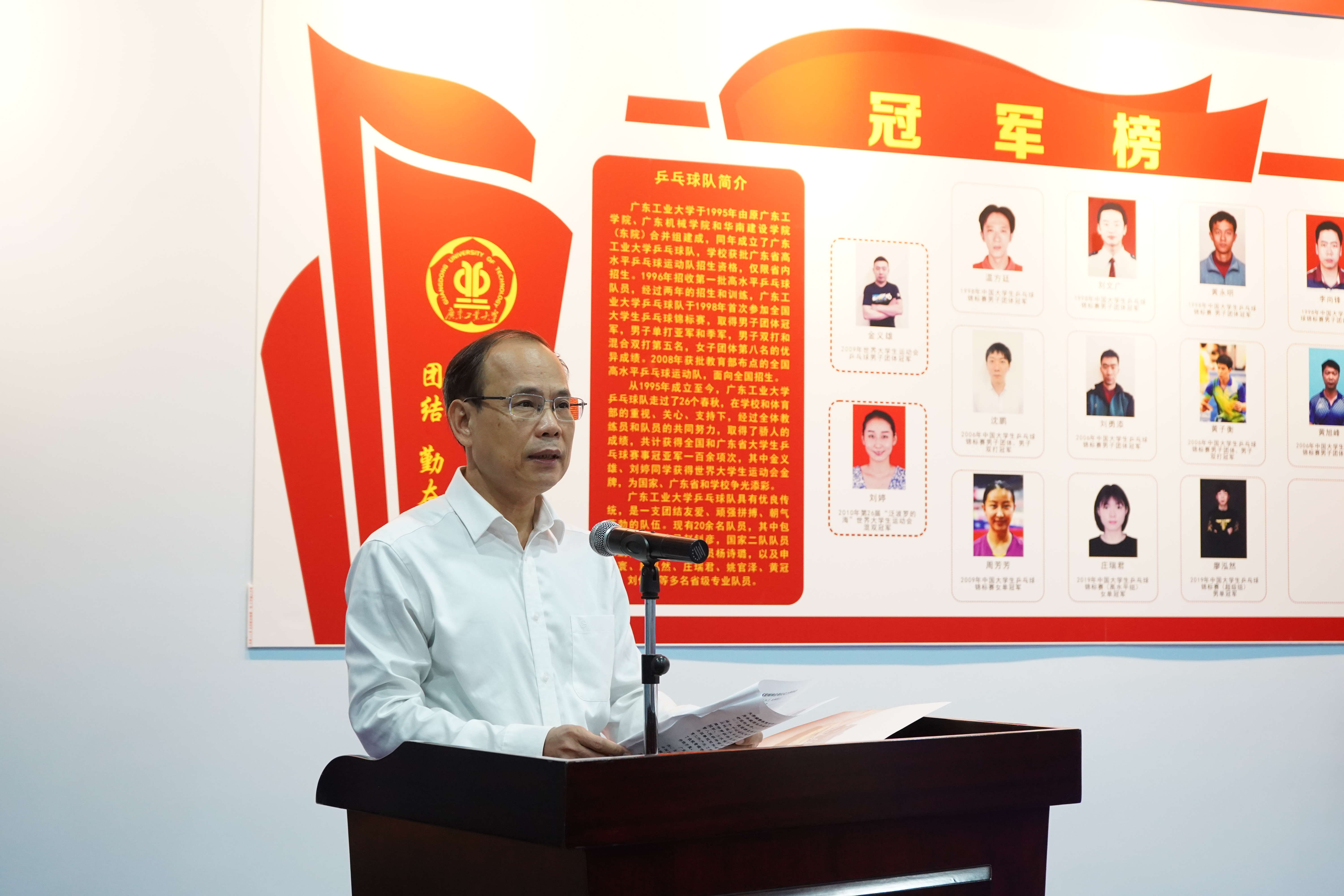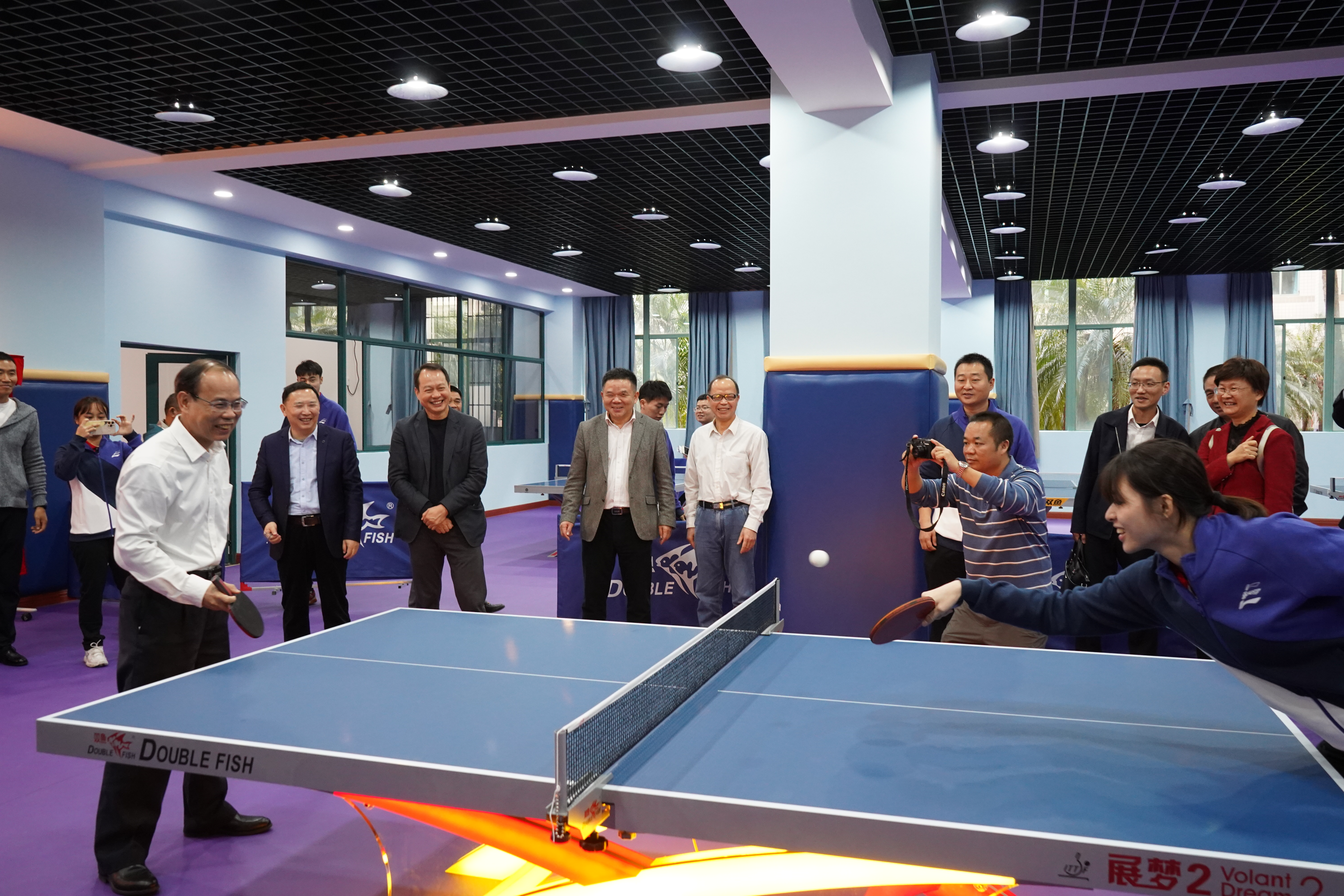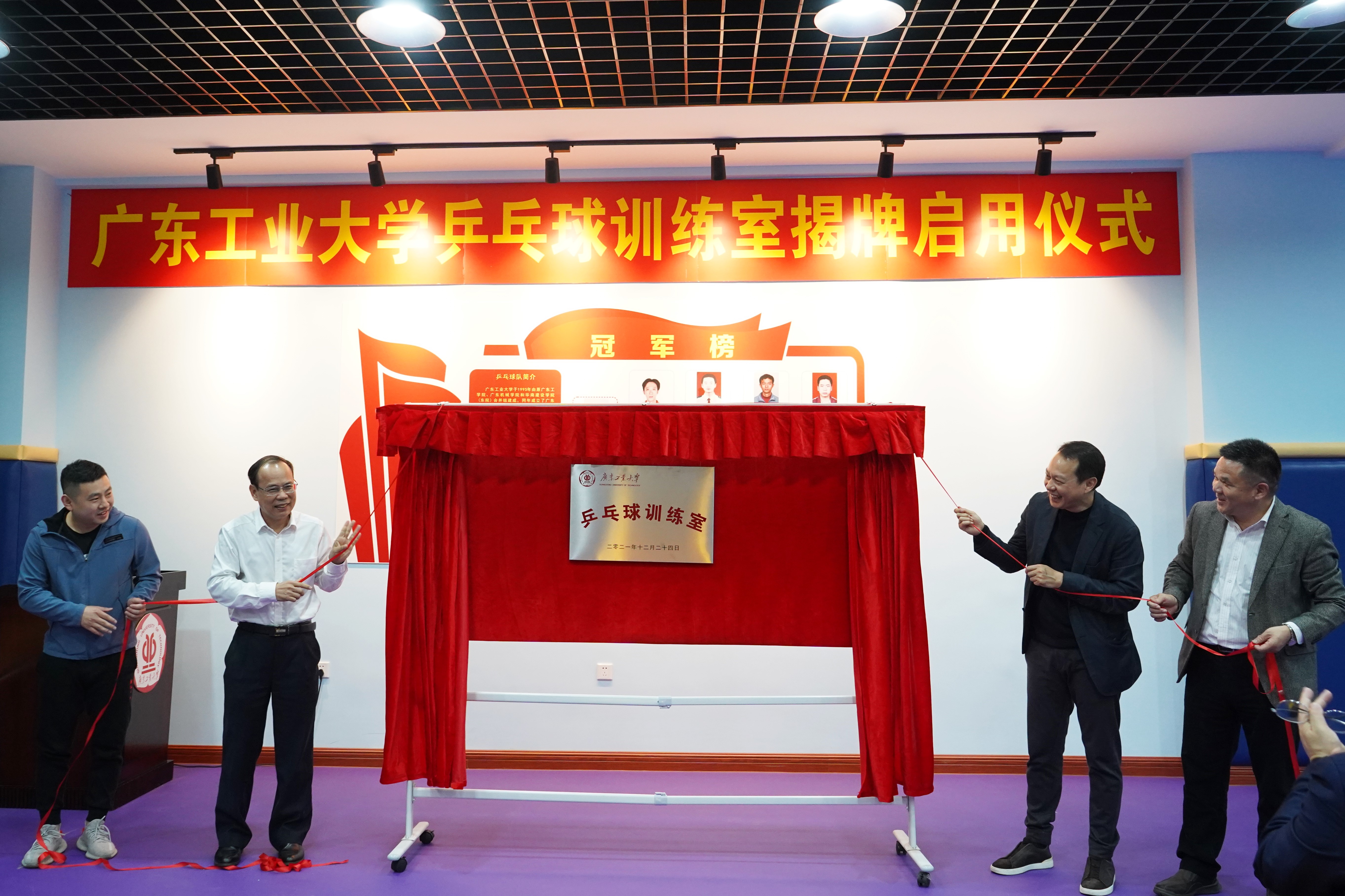 12月24日下午,学校在龙洞校区乒乓球训练室举行揭牌启用仪式。学校党委副书记、校长邱学青,学校党委常委、副校长杜承铭,学校副校长余林,校友广东方直集团有限公司董事长陈专和世界大学生运动会冠军金义雄应邀出席仪式。学校相关部门及学院领导、高水平乒乓球队教练员和队员参加仪式。