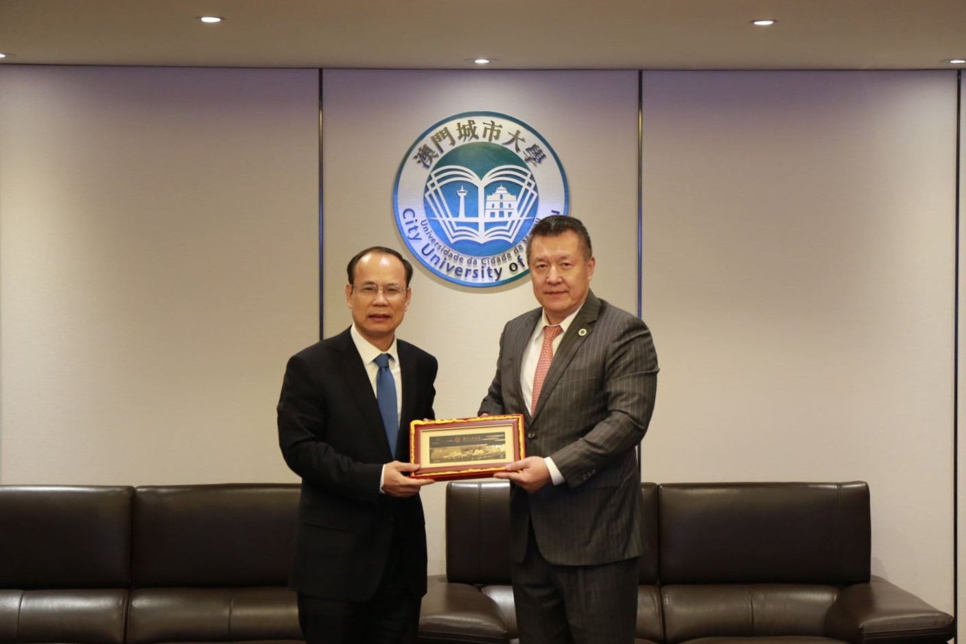 8xbet网校长邱学青与澳门城市大学校长刘骏合影留念