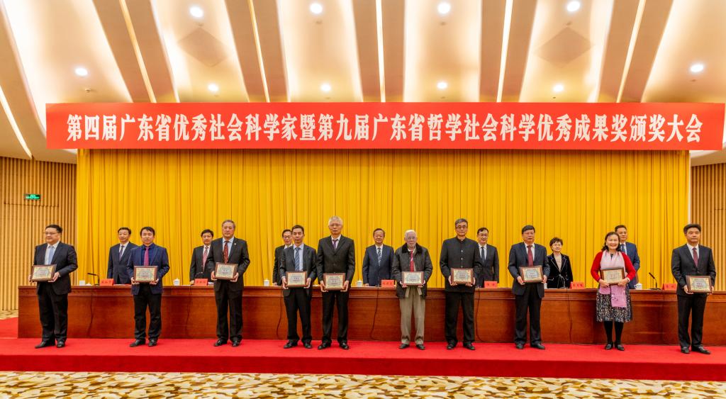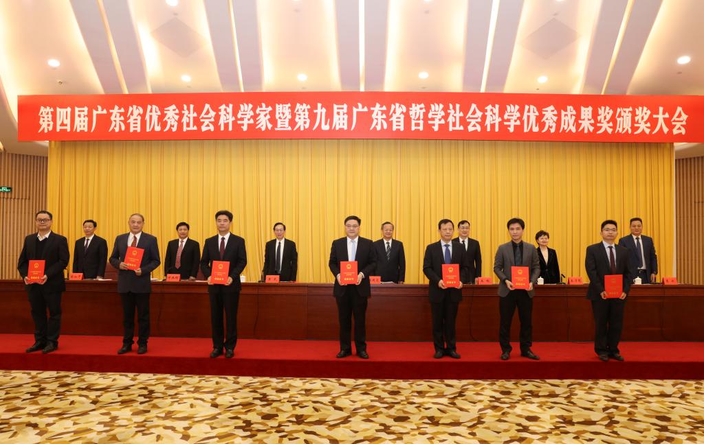 1月12日上午,第四届广东省优秀社会科学家暨第九届广东省哲学社会科学优秀成果奖颁奖大会在广州举行。省委常委、宣传部部长、省哲学社会科学规划领导小组组长陈建文出席会议并讲话。省政府副省长王曦,省哲学社会科学规划领导小组成员,有关高校负责同志,本届省优秀社会科学家、优秀成果奖获奖代表,各地市社科联负责同志等参加颁奖大会。广工获奖代表胡钦太教授、王如玉特聘教授、王娟教授及科学研究管理部相关负责人参会。