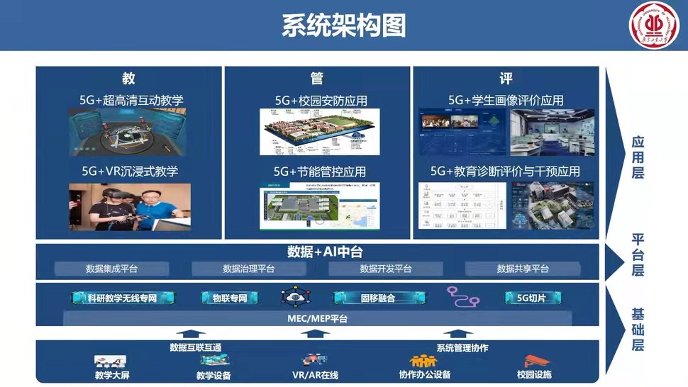 以广工为主申报的《面向5G智慧校园的AI伴随式综合评价生态体系》项目,联合了中国联通、腾讯云等企业,探索全面建设面向5G智慧校园的AI伴随式综合评价生态体系,是广工深入信息化建设征途上的又一个发力方向。该系统将通过5G等新一代网络设施的硬件基座,以应用中台、AI中台和物联网的中台模式以及三位一体的应用架构,实现云网端一体化的智慧校园生态环境支撑。该系统布局成功后,能实现伴随式学生数据采集以及学生画像构建,有效提升科教协同辐射能力和其他核心业务效能,赋能8xbet网高水平建设。同时,5G+AI智慧校园伴随式评价生态范式以及关键技术成果落地方案的成功布局,将形成一套可供推广的示范方案,助力国内同类型的高等院校建设多校区的校园生态圈。