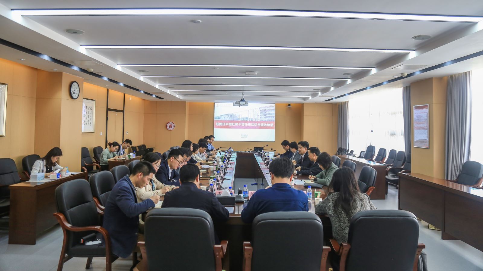 3月3日上午,学校新提任中层干部任职谈话与廉政谈话会议在大学城校区行政楼702会议室举行。学校党委书记胡钦太,党委副书记陈良友,党委副书记、纪委书记、广东省监委驻8xbet网监察专员熊静与新提任的15名中层干部进行了集体谈话。会议由党委常委,组织部、统战部部长李靖茂主持。