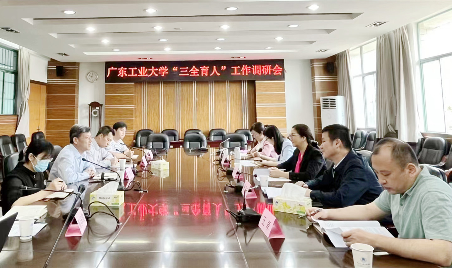 “三全育人”工作是学校2022年十件发展大事之一,为有力有序高效推进,促进高质量发展,加快构建具有工科特色的思想政治工作体系,4月7日、8日,校党委副书记朱蔚蔚,带领学校党委常委、宣传部部长张育广和学生工作部、教务处、团委等部门相关负责人,到管理学院、自动化学院、马克思主义学院等学校“三全育人”综合改革试点学院座谈调研、走访交流,并组织相关部门主持召开专题调研会,了解学校“三全育人”体制机制建设情况,查摆存在问题和难点,要求形成联动机制,严格按照时间节点和工作要求,高质高效完成广东省高校“三全育人”体制机制建设试点单位各项任务。