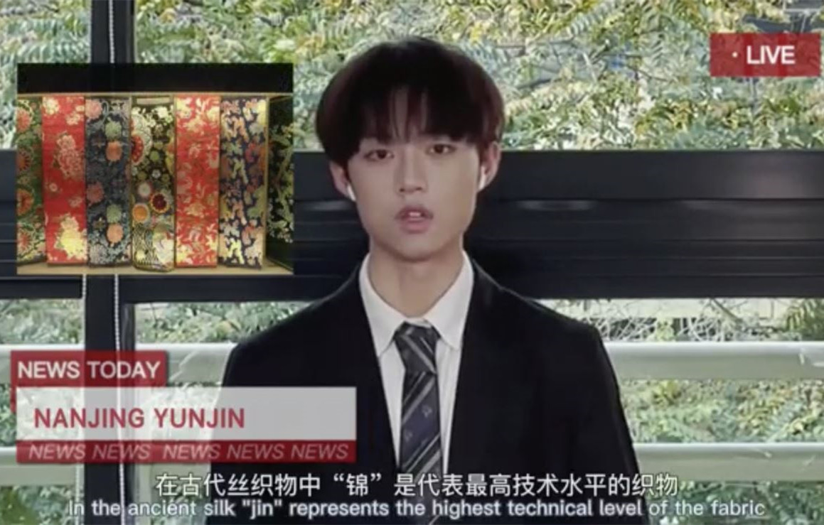 本作品通过南京云锦这门传统手工织造技艺来传播工匠精神,运用新闻联播这种新颖形式讲述南京云锦的由来、背景、制作工序及其在现代生活中的运用,以体现手工艺人们的创意、坚守与传承。团队成员运用地道流利的英文表达,娓娓道出非遗艺术的魅力,用心讲述中国传统文化,用文字传递情感,用声音传播故事。
