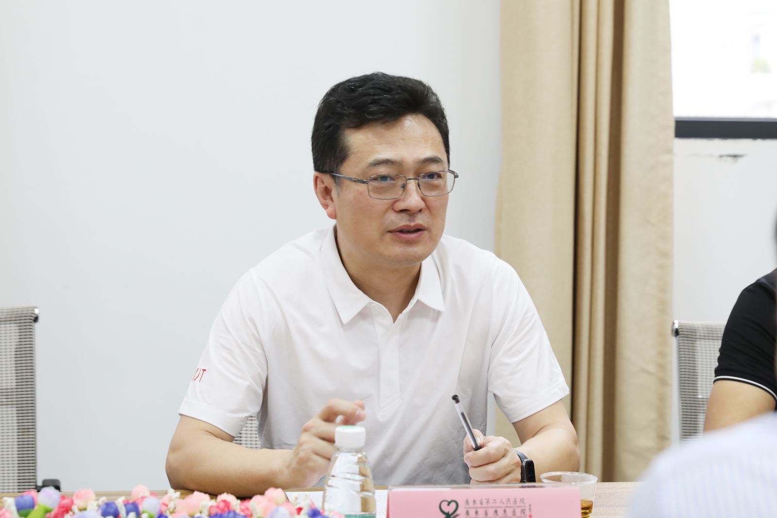 瞿红鹰围绕广东省第二人民医院智慧医疗和应急救援特色,表示医院急需与工科深度融合,在智慧医疗、互联网医疗等方面取得技术突破。双方在先进诊断、医疗技术研究、生物医药等方面的合作初显成效,希望接下来有更广泛更深度的合作,推进医工融合发展。