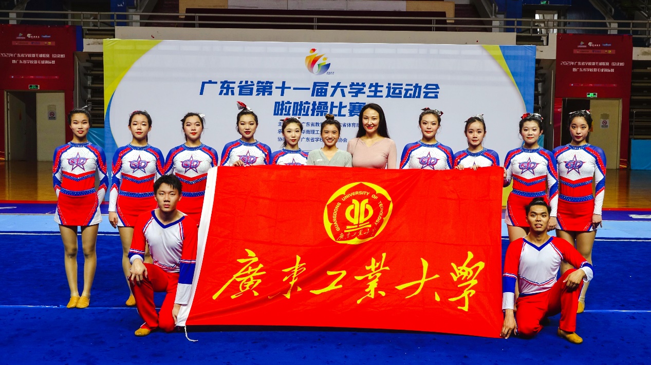 2021年7月,啦啦操运动成为奥运会的比赛项目,本届广东省大学生运动会也纳入了啦啦操这一比赛项目。健美操是广工传统体育项目,健美操啦啦队是广工老牌社团,在校运会等校内大型活动中都能见到队员们青春洋溢的身影。在本届省大运会,广工啦啦操代表队由学校团委书记王亚煦担任领队,谭韵彤老师担任教练员,7男17女共24名学生运动员组成,参加甲组(普通生组)比赛。