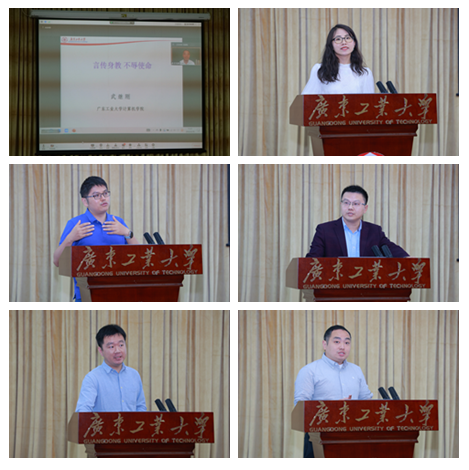 自动化学院周琪教授、计算机学院蔡瑞初教授、管理学院吴小节教授、轻工化工学院张文礼教授和生态环境与资源学院马传鑫教授分别围绕“个人成长经验分享”“用很大努力和耐心做好正确的事情”“梦想不止憧憬,而要尽心打造”“信念、坚持和理想”和“携初心远行,归国实现自我”等作主题报告,分享青年人才在教学科研中的切身体会和真知灼见。计算机学院武继刚教授以“言传身教,不辱使命”为题,分享自己教学科研并重、践行“为谁培养人、培养什么人,怎样培养人”初心使命的经验。