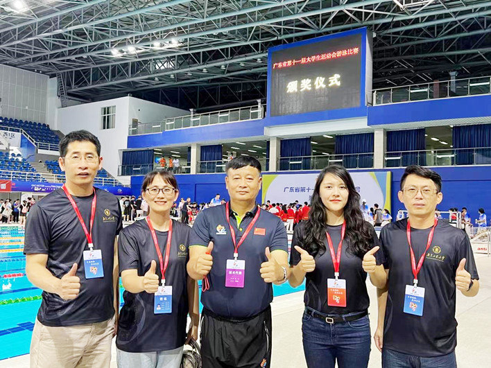 广东省第十一届大学生运动会游泳比赛于5月24—29日在广东省奥林匹克体育中心游泳馆圆满结束。经过四天激烈的角逐,广工16名队员不负使命,夺得6金2银4铜,团体总分榜第二,被授予“体育道德风尚奖”,符壮、邓小光两位老师获评“优秀教练员”,实现了运动成绩和精神文明“双丰收”,出色完成学校交给的任务。