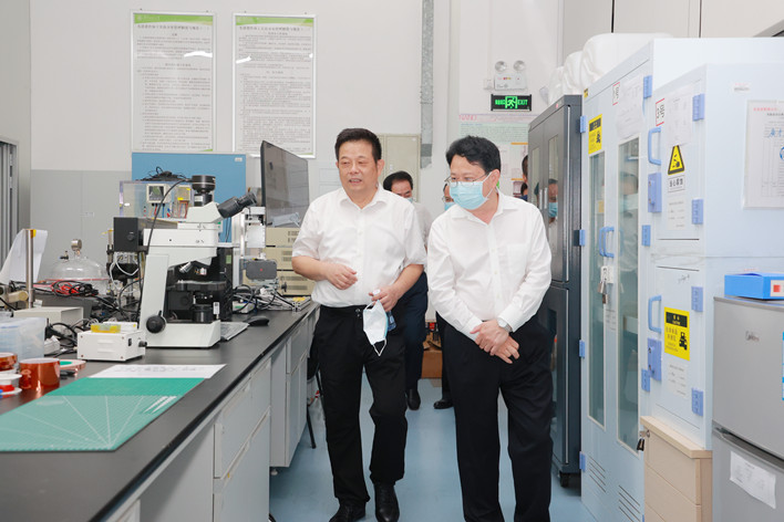 调研座谈会前,调研组参观了学校省部共建精密电子制造技术与装备国家重点实验室和广东省微创手术器械设计与精密制造重点实验室,对其在关键技术攻关、成果转化等方面取得的成绩给予了肯定。