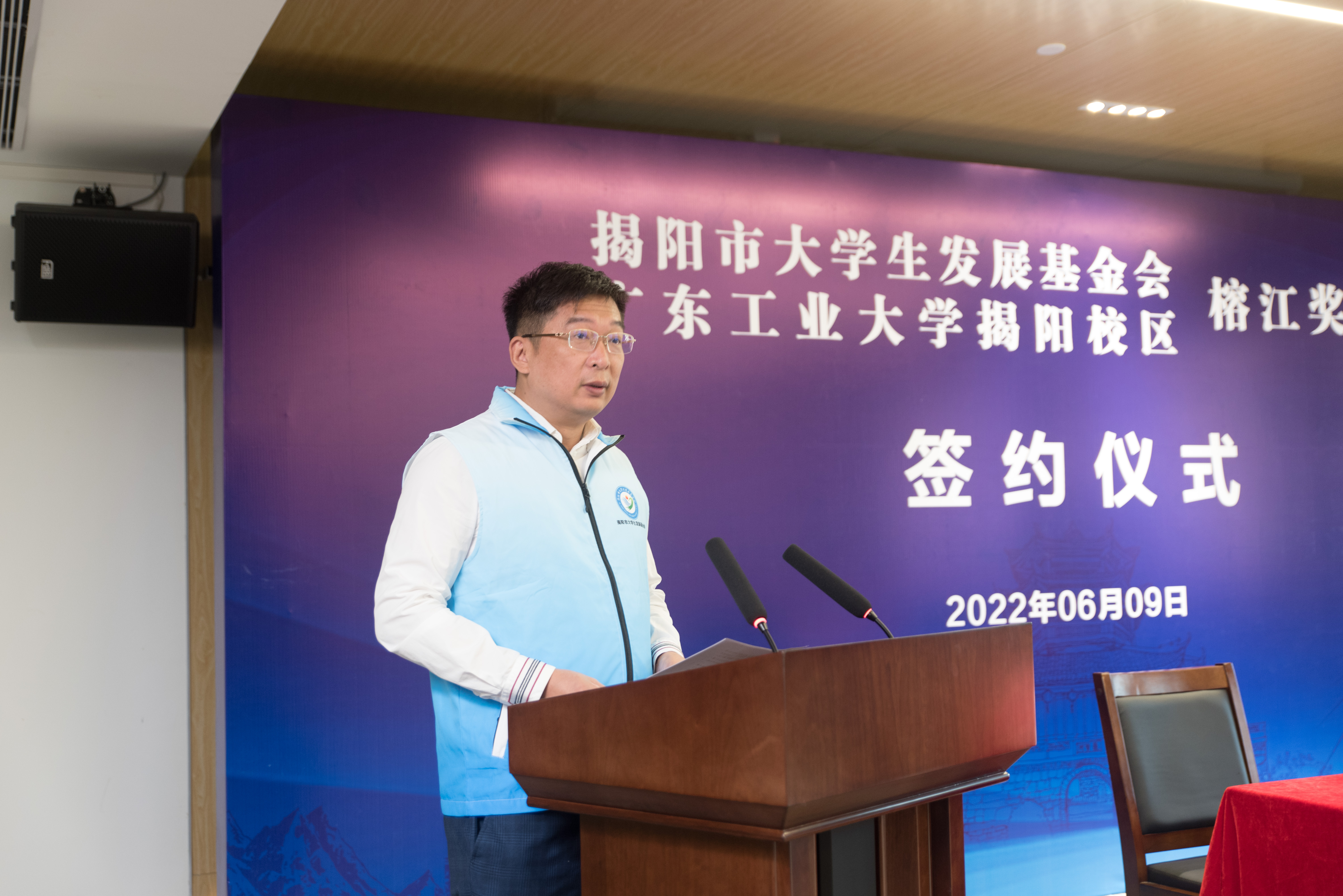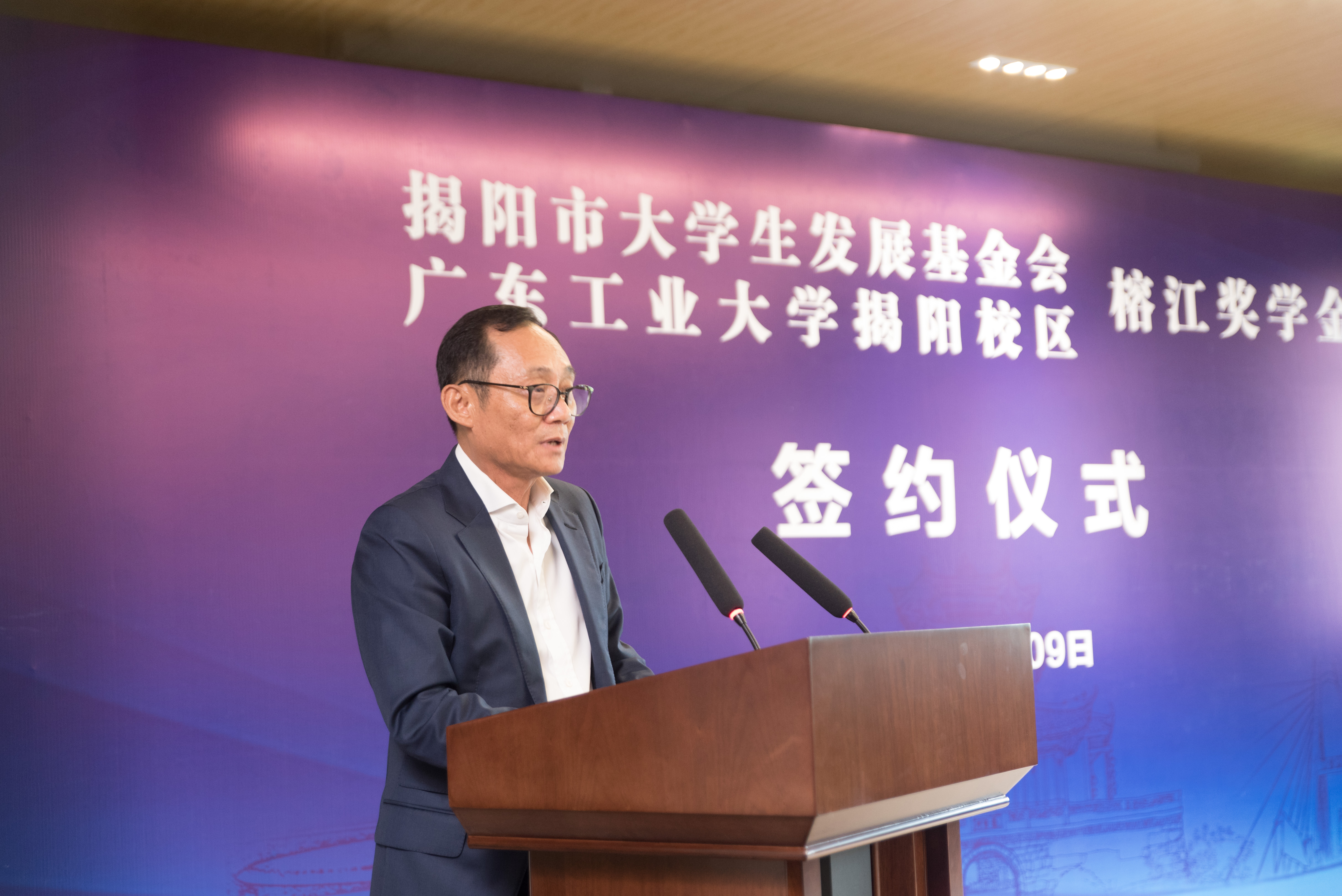 胡钦太在讲话中强调,爱心企业家林辉勇先生是揭阳著名乡贤,在实现自身稳健发展的同时,林辉勇先生不忘家乡,桑梓情深,树立了揭阳乡贤助力家乡高等教育事业发展的标杆。“榕江奖学金”落地广工揭阳校区是广工学子之幸,是揭阳校区发展之幸,必将为揭阳高层次人才培养注入新动能。