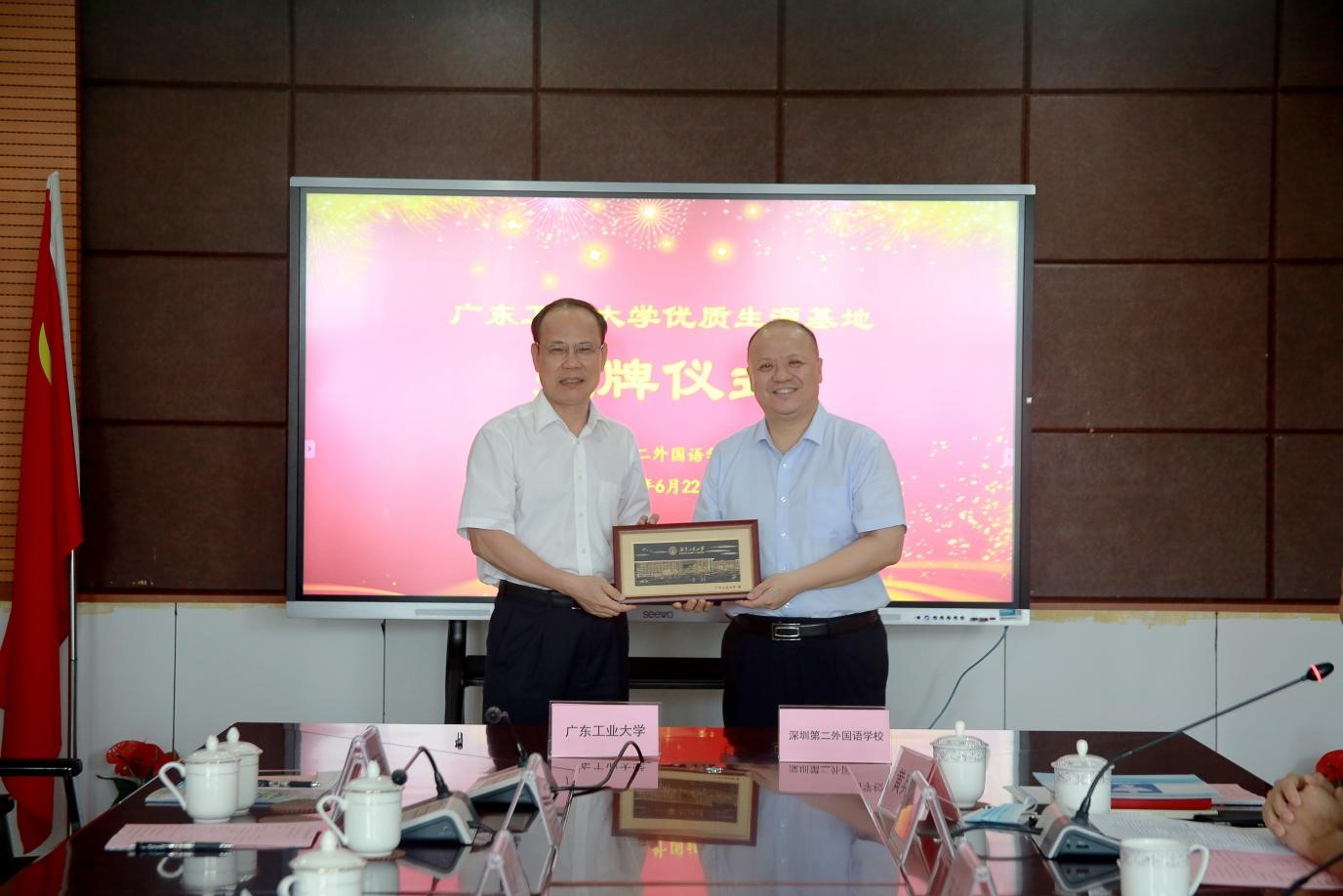 陈卓武代表学校向深圳市第二外国语学校授予“8xbet网优质生源基地”牌匾。