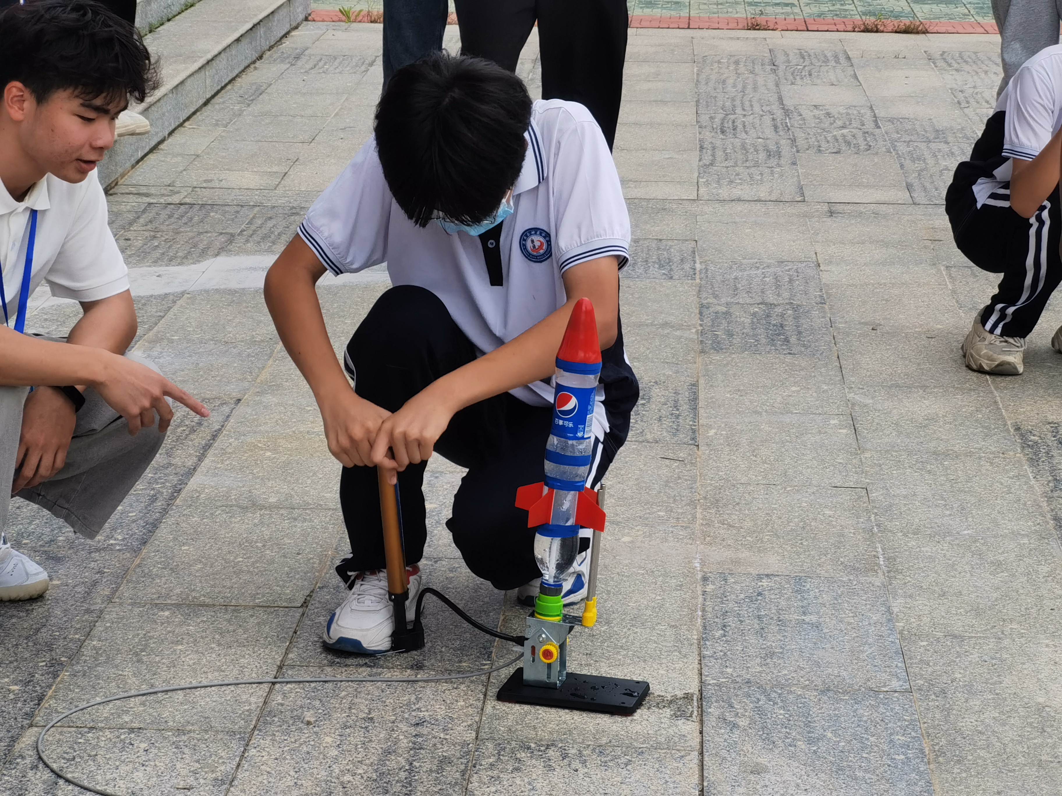 神泉中学学生根据上课知识制作并发射水火箭