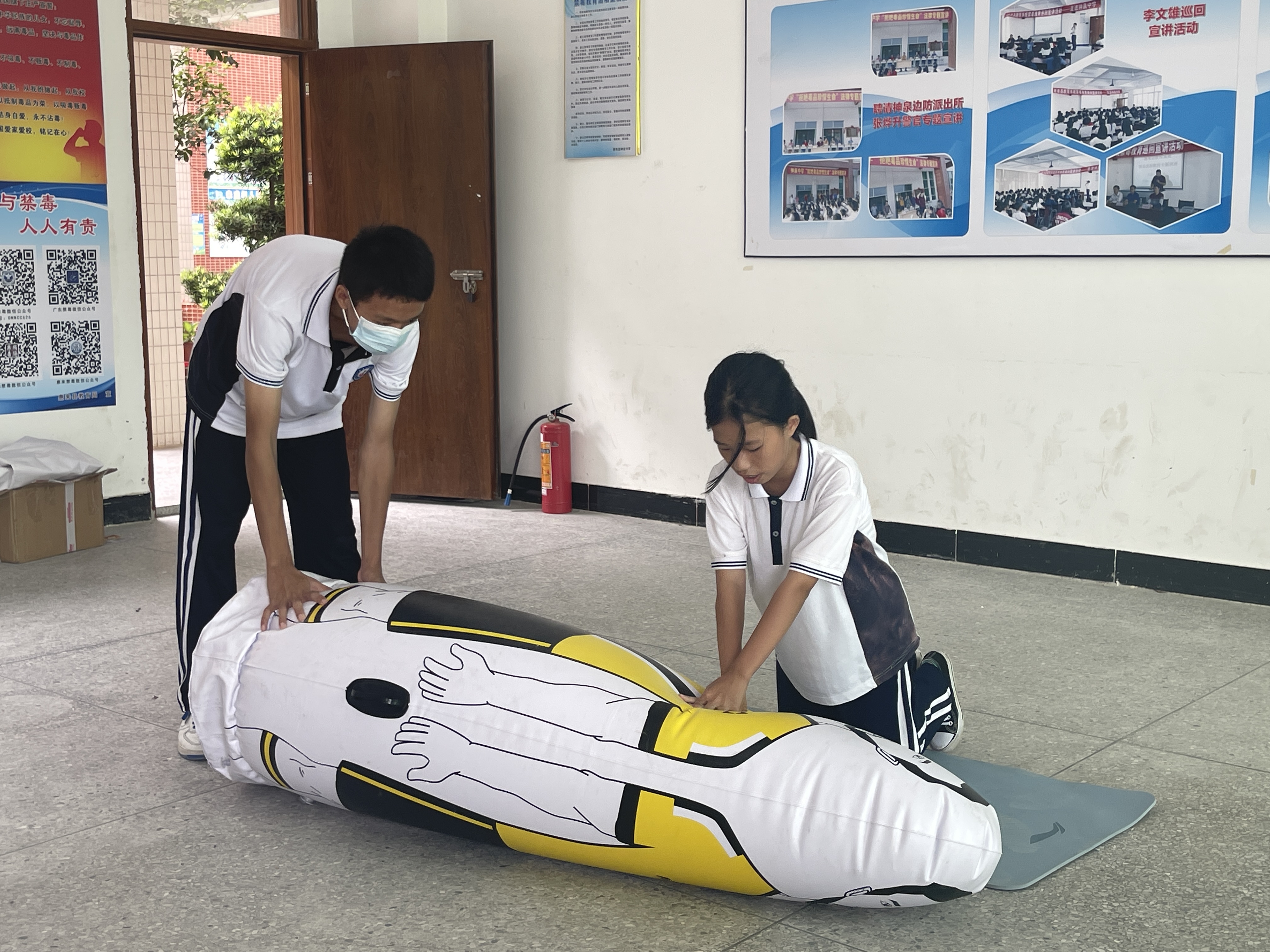 神泉中学学生展示课上所学的心脏复苏技能