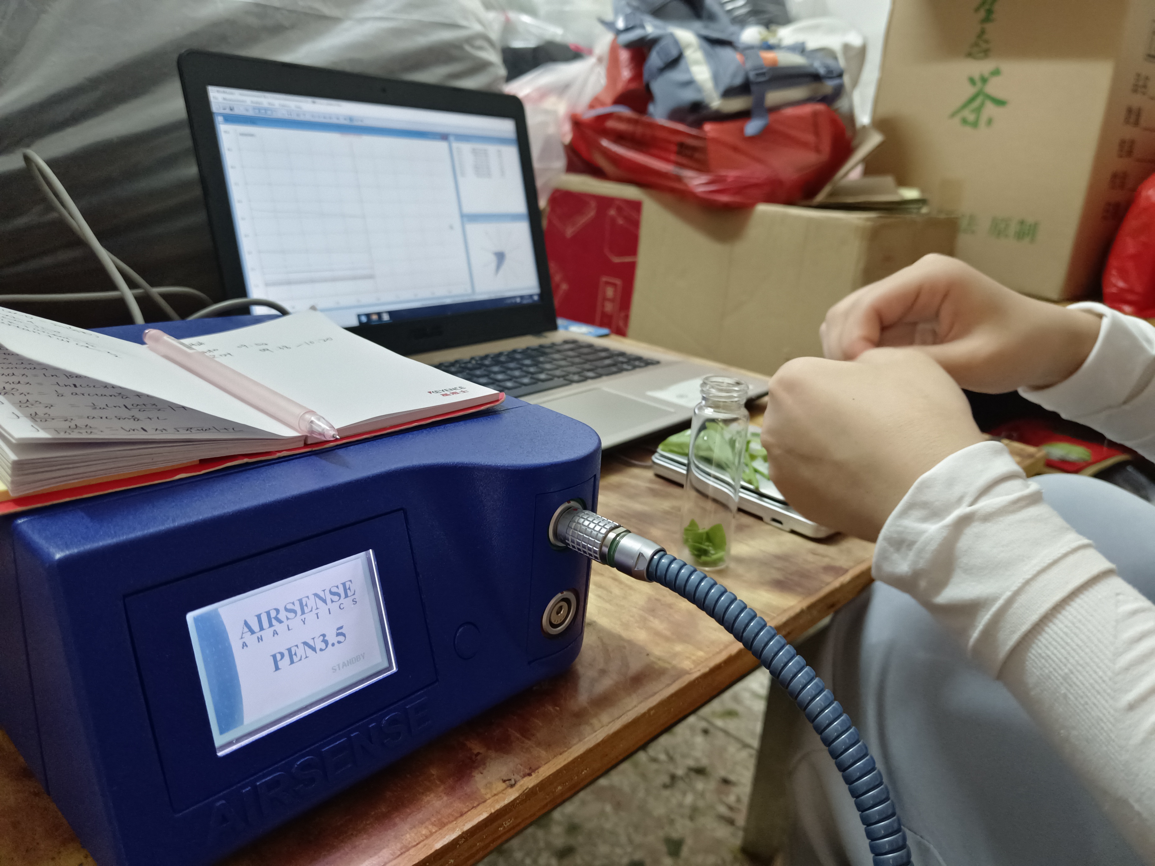 此外,实践队还将专业知识与实践充分结合,利用电子鼻等设备对茶叶成分进行了测定,分析了其中有益成分的产生与保留,全力推动工艺优化。