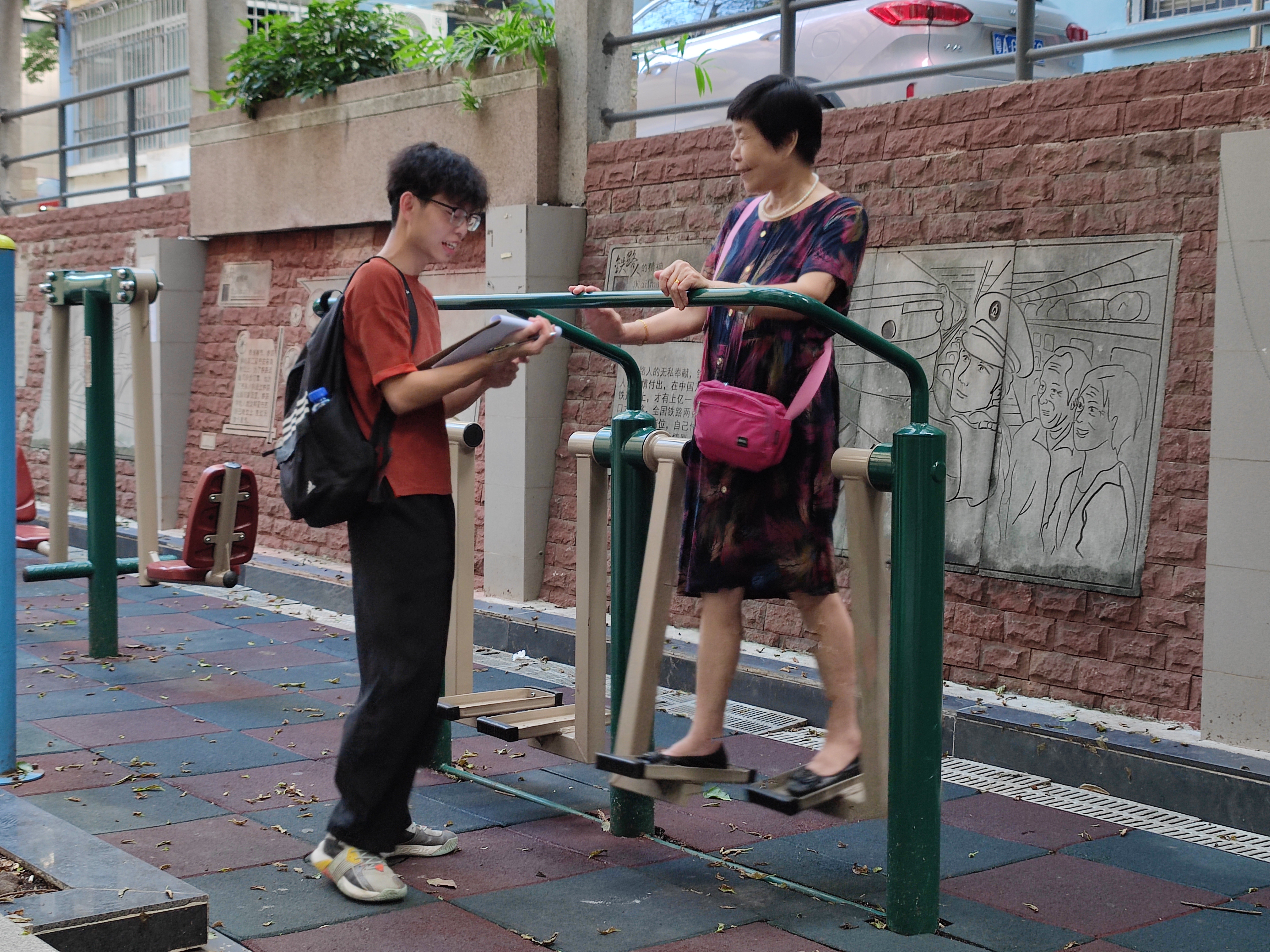 与此同时,邓非凡也正在忙碌着。烈日当头,他和团队小伙伴在广州的街道分发问卷和传单,为大众科普“碳减排、碳中和、碳达峰”的理念。