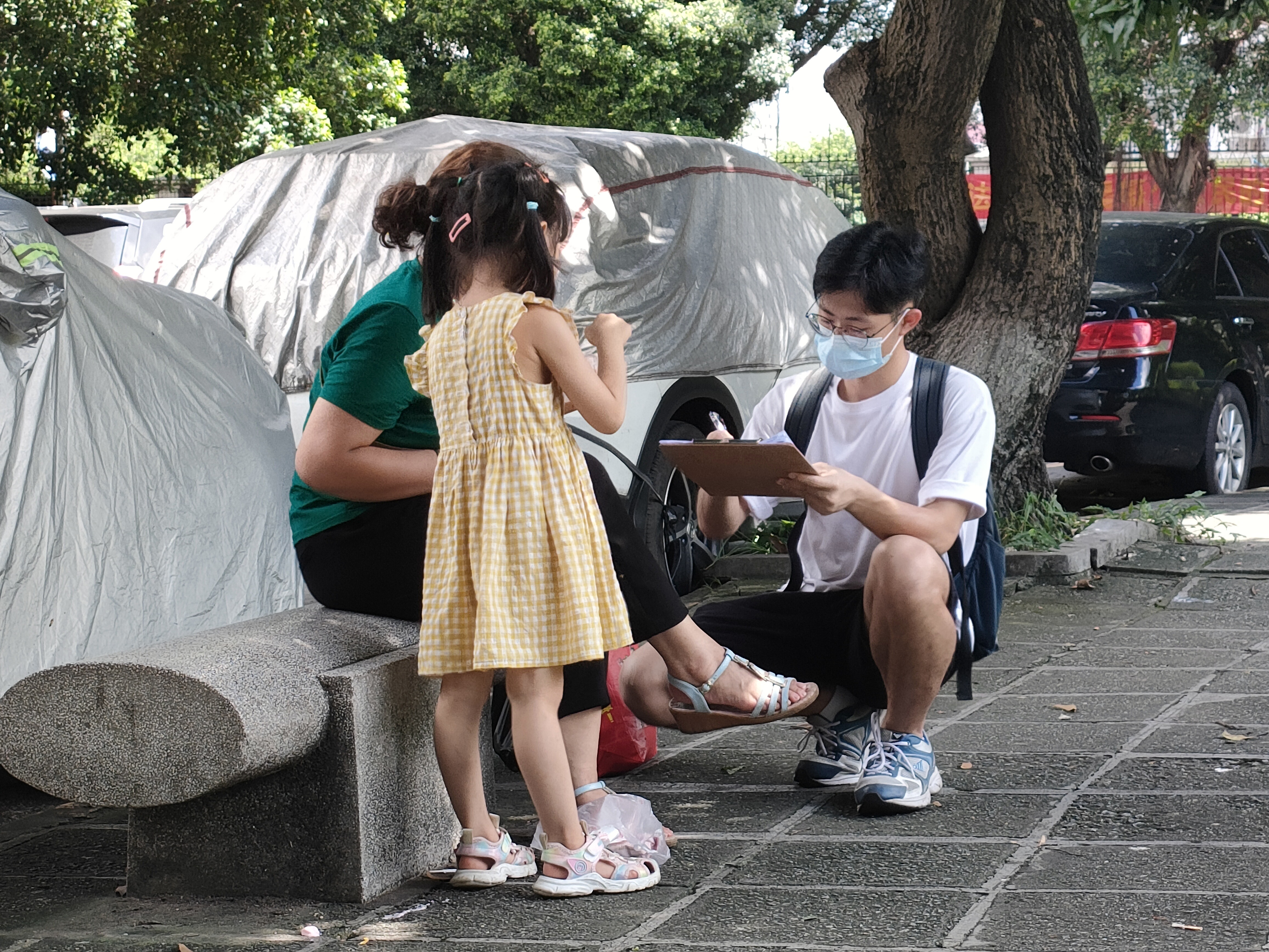 在三伏天里,广州市的街道上出现了这样一群顶着烈日分发问卷的志愿者们,他们是“绿色出行,步步生花——双碳背景下城市居民低碳交通出行与TOD规划模式研究”实践团。在这个假期,他们选择深入基层,为大众科普“碳减排、碳中和、碳达峰”的理念。