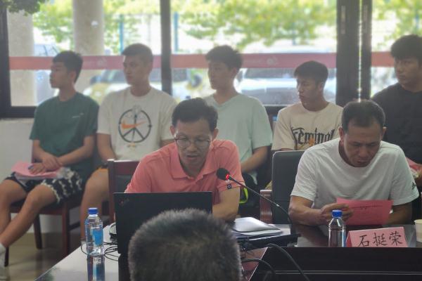 会上,体育部主任龚建林作《体教融合-学训相长》主题报告,全面介绍了高水平运动队建设历程和辉煌成绩、《8xbet网高水平运动队管理办法》等文件精神。高水平运动队主教练贾佳作为教练员代表发言,勉励新生传承精神、争创佳绩。2022级高水平男篮新生宿珈祎作为新生代表发言,分享了在训练参赛中践行校训精神的理解感悟。教务处副处长徐永安督促同学们加强文化课程学习,以适应新形势下的学业要求。招生办公室主任苏兆祥寄语同学们能传承广工体育精神,继续为校争光夺彩。管理学院副书记何绍彬希望同学们能尽快融入大学集体生活,密切联系辅导员,四年后取得学业和特长双丰收。经济与贸易学院副书记陈朝阳期盼同学们能发挥自身特长,引领学院体育运动健康发展、调动师生参与运动的热情。