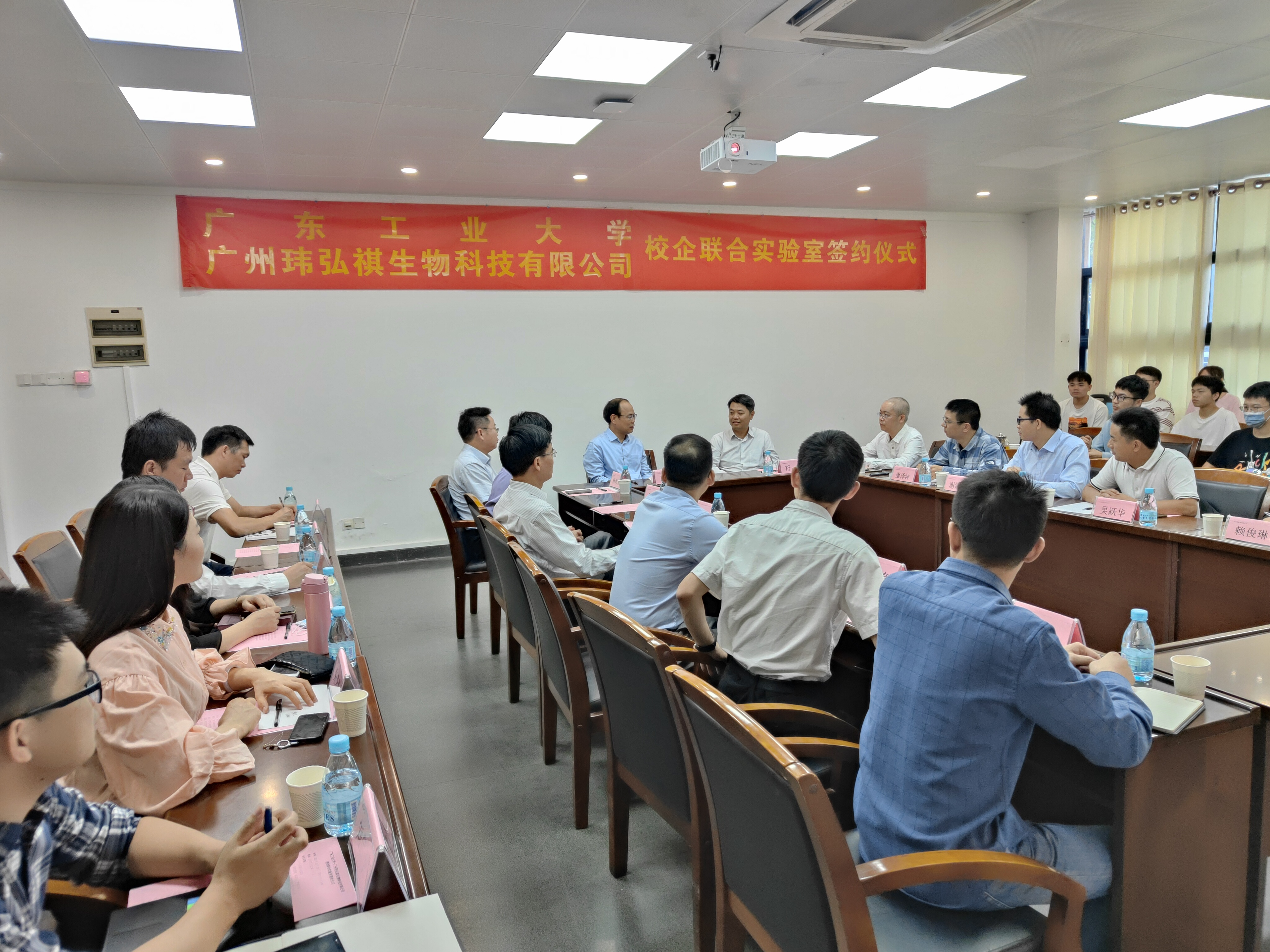 10月20日下午,学校与广州玮弘祺生物科技有限公司校企联合实验室签约仪式在工学四号馆顺利举行。学校校长邱学青、产业研究与开发院、轻工化工学院相关负责人,相关企业代表、校友等参加了会议。