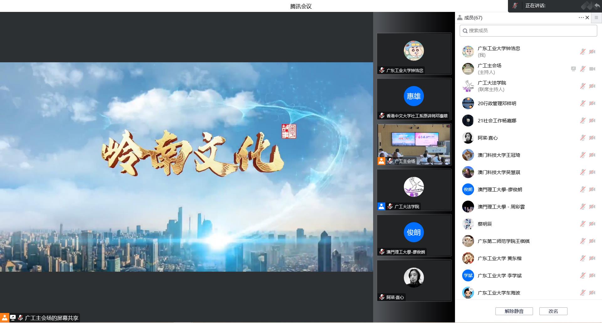 胡钦太对粤港澳三地高校社工专业学子克服疫情影响、如期开启专业与文化交流之旅表示热烈欢迎。他指出,粤港澳大湾区建设作为国家重大战略,正在如火如荼打造世界一流湾区,大湾区是新时代三地青年成长成才的深厚沃土、干事创业的广阔空间、实现梦想的宝贵平台,大湾区深化社会保障和社会治理合作等一系列重大举措,为三地教育合作、社会工作合作和青年文化交流带来了新的契机。他鼓励三地青年社工加强专业交流,提升专业素养,践行“助人自助”精神,为促进社会公平、解决社会问题、探索社会治理创新、推动经济社会协调发展而不懈努力。他希望同学们通过“文化之旅”,继承和弘扬博大精深的中华优秀传统文化,感受和领略魅力独特的岭南文化,进一步增强文化认同和文化自信;希望同学们通过交流分享,交心交融,结下珍贵友谊,一同成长成才,携手为湾区梦贡献青春力量。