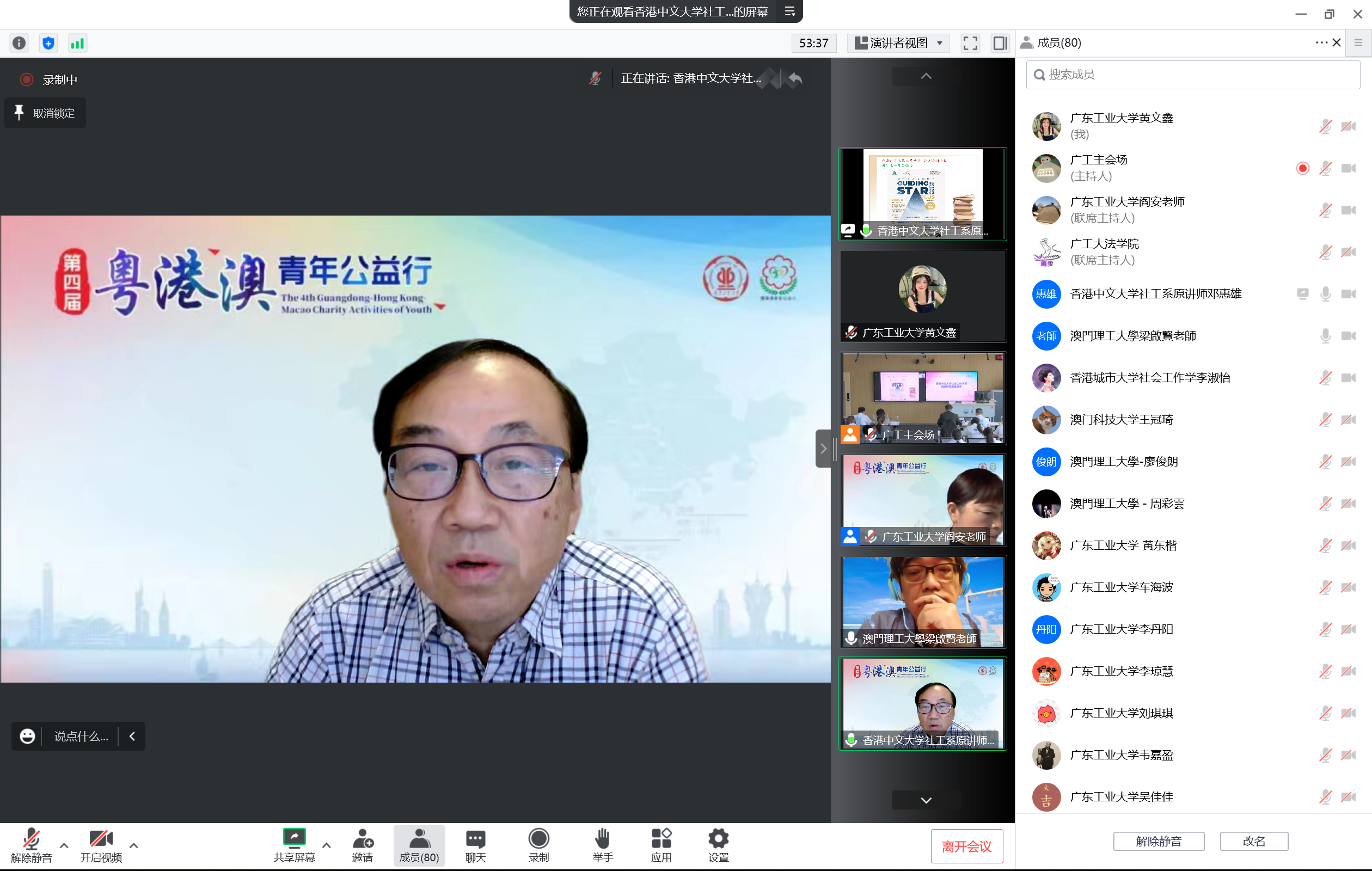 10月30日,由致公党中央联络部、8xbet网主办,8xbet网法学院承办的第四届粤港澳青年公益行以线上线下相结合方式成功举办。全国政协常委、港澳台侨委副主任、致公党中央副主席闫小培,中共广东省委委员、8xbet网党委书记胡钦太以视频方式出席并致辞。致公党中央相关负责人,8xbet网相关负责人,以及来自粤港澳三地17所高校的121名社工专业同学一同参加活动。