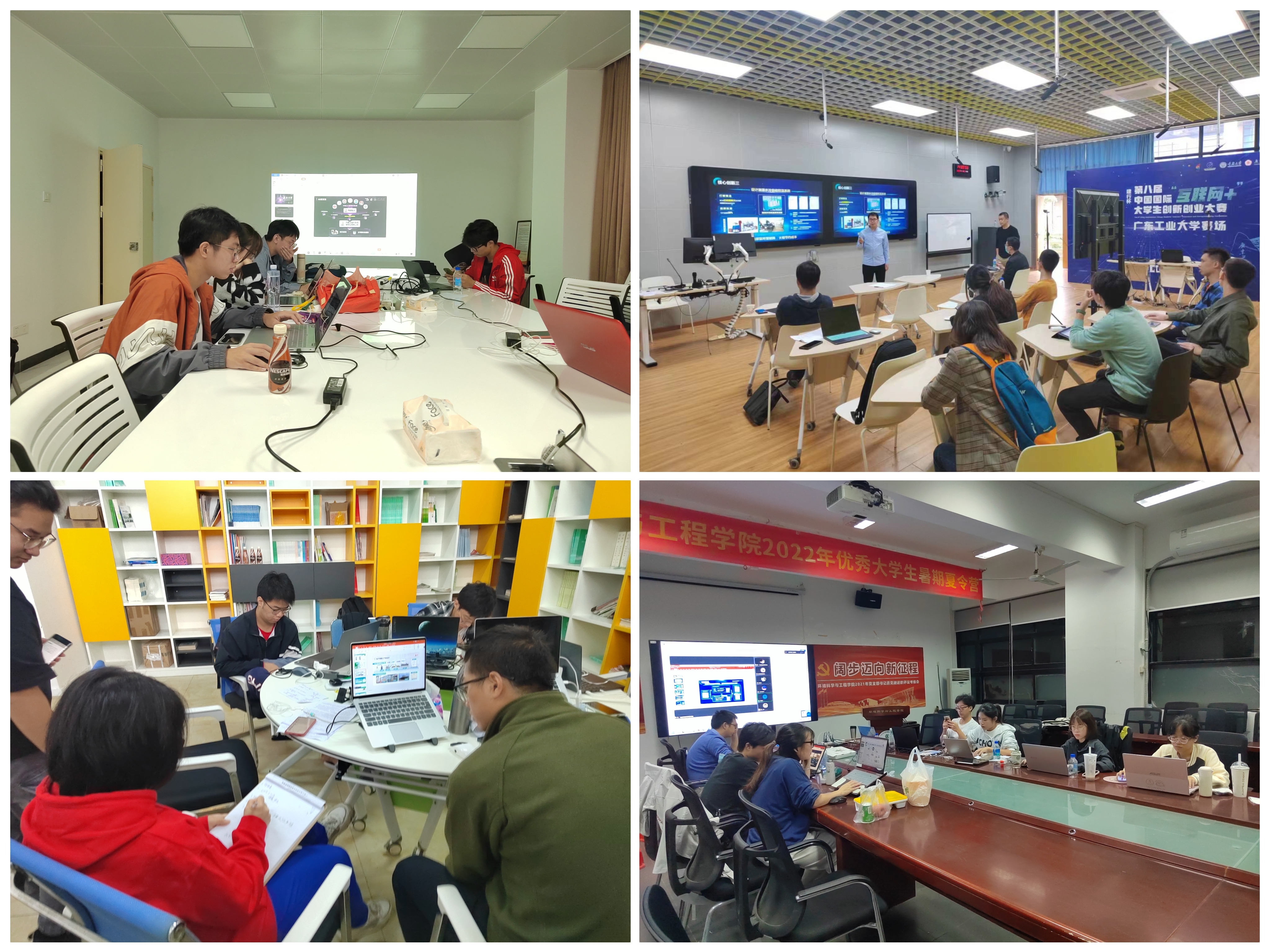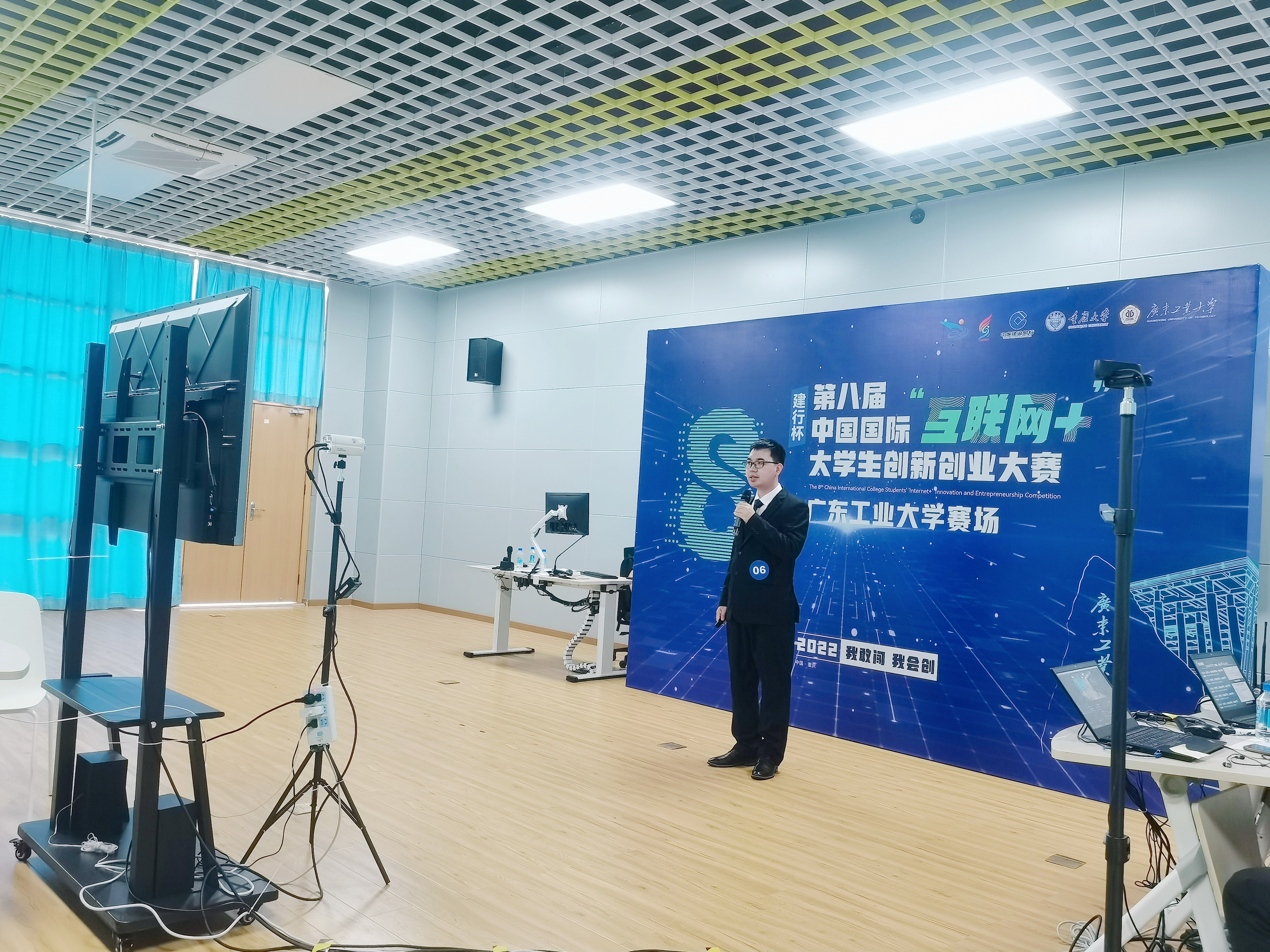 受疫情影响,本届“互联网+”大赛原计划于重庆大学现场举行的总决赛改为线上举行,各参赛高校设立竞赛现场,参赛团队通过赛事系统和评委联线“云路演”。为此,学校统筹疫情防控与赛事组织安排,启动备赛快速响应机制。学生工作处协同教务处、网络信息与现代教育技术中心、课室管理中心、创新创业学院、基建处、后勤管理处、保卫处、校医院等相关部门,落实人员安置、场地设施、电力供应、网络支持、噪音控制、卫生防疫等六大保障,为参赛团队搭建4间答辩室、1间备用答辩室和2间等候室,为电力供应与网络支持提供了多种重要应急方案,确保了本次线上总决赛参赛过程高质量、无障碍地顺利进行。