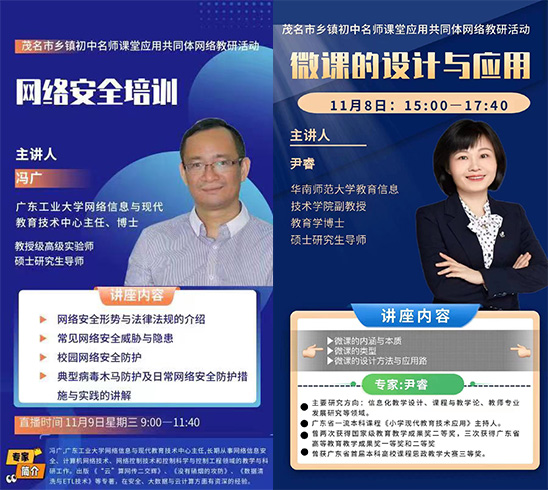 为了落实《广东省推动基础教育高质量发展行动方案》(粤府〔2021〕55号)的通知精神,提升茂名市、揭阳市、汕头市潮阳区三地中小学教师的信息技术能力,根据对口帮扶协议,2022年11月8-16日,我校举办线上基础教育教师信息技术能力提升培训班。在教务处的指导下,网络信息与现代教育技术中心负责承办本次培训,精心设计培训内容,组织相关专家进行授课。