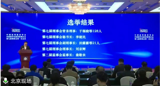 会上,广工当选为中国高等教育学会外国留学生教育管理分会第七届理事会常务理事单位,国际交流学院黄鑫城同志当选第七届理事会常务理事。