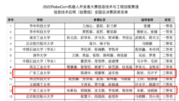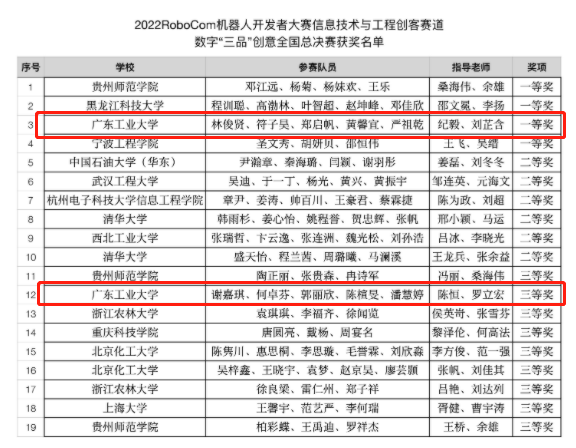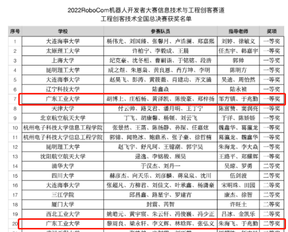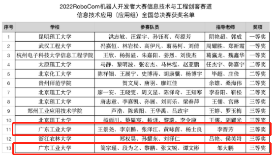 本次获奖团队具体名单见下表(名单截图自网站:https://www.robocom.com.cn/):