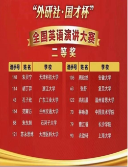 “外研社·国才杯”全国英语演讲、写作、阅读大赛是由外语教学与研究出版社和中国外语与教育研究中心联合主办、北京外研在线数字科技有限公司和中国外语测评中心协办的大型公益赛事。凭借其权威性、学术性和专业性,大赛自 2018 年起连续五年入选教育部中国高等教育学会发布的“全国普通高校大学生竞赛排行榜”,并被包括广东省在内的多地教育主管部门纳入省厅级比赛项目。大赛在引领理念、培养人才、推动教学等方面的成果备受认可。期待未来更多的同学积极参加外研社比赛,在演讲舞台上展示自己的光彩!