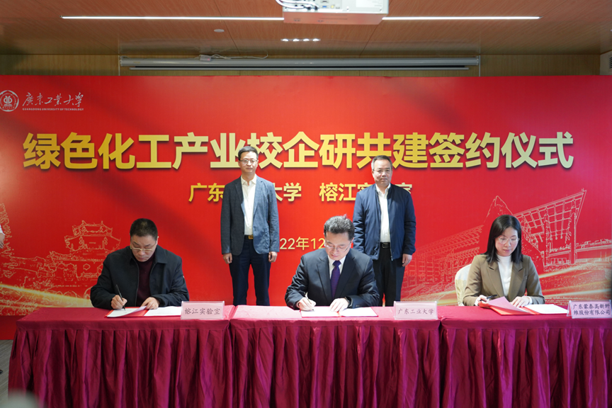 签约仪式上,广工联合榕江实验室分别与中国石油广东石化公司、广东蒙泰高新纤维股份有限公司、广东国兴乳胶丝有限公司3家企业就绿色化工产业产学研合作签订了《战略合作协议》。