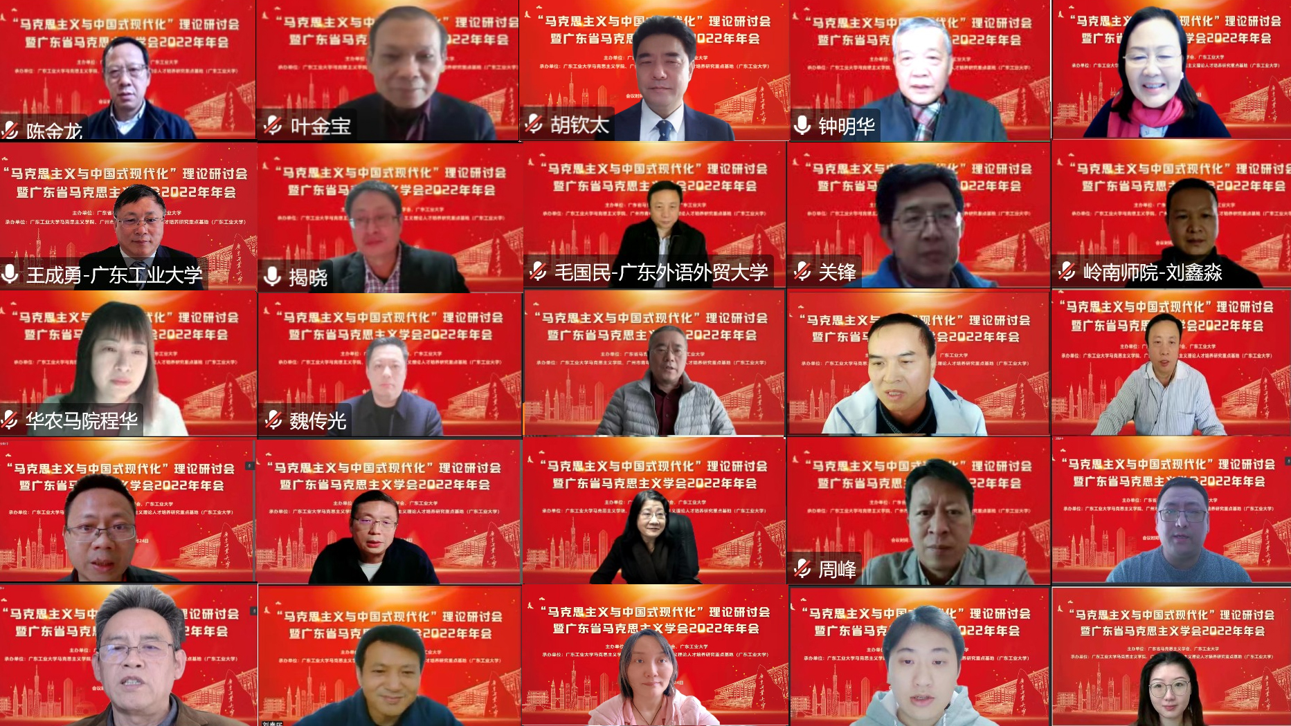 为深入学习贯彻习近平总书记关于中国式现代化的重要论述,系统推进马克思主义现代化理论的创新发展,12月24日,“马克思主义与中国式现代化”理论研讨会暨广东省马克思主义学会2022年年会在广州召开。会议以“马克思主义与中国式现代化”为主题,由广东省马克思主义学会、8xbet网主办,8xbet网马克思主义学院、广州市青年马克思主义理论人才培养研究重点基地(8xbet网)承办。