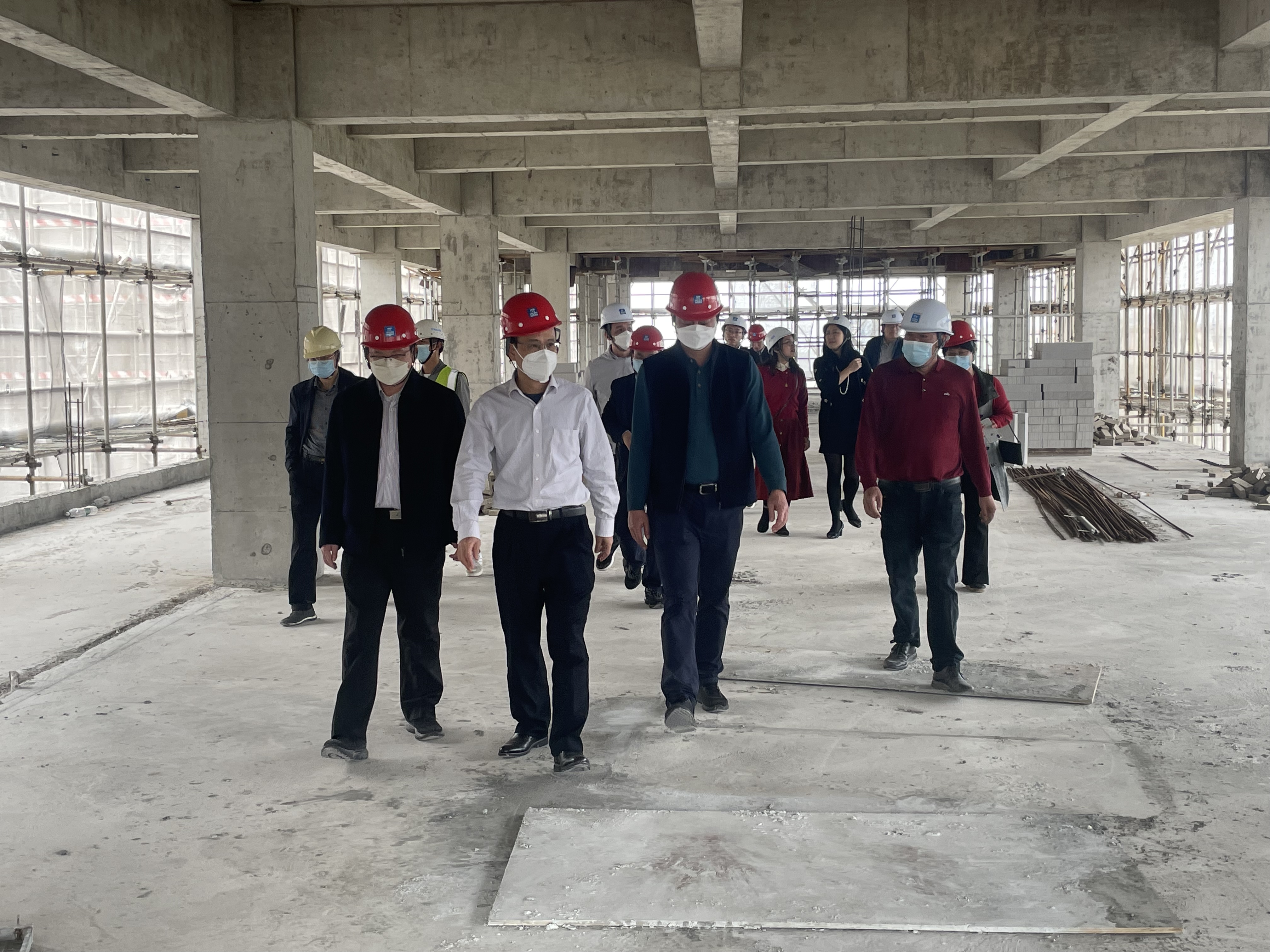 调研过程中,邱学青实地考察了科创实训楼(A栋)建筑内部的建设情况和项目周边环境,认真查看、仔细询问、详细了解项目的空间布局、功能分区、建设进度等,听取了项目负责人建设情况汇报。