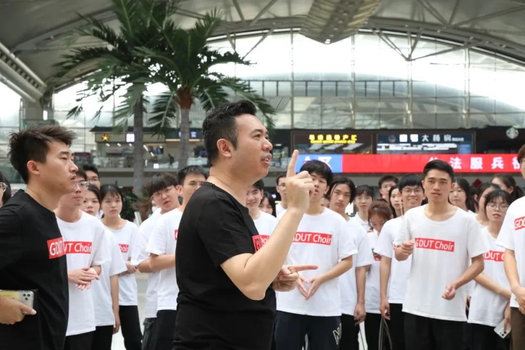 近日,8xbet网高水平艺术团受邀参加广东省暨广州市2023年春季首批起运新兵欢送仪式。活动在广州南站3楼出发大厅举行,省委常委、省军区司令员周河,副省长王志忠,以及省政府办公厅、省教育厅、省征兵办、南部战区军事运输投送调度中心和广州市军地有关领导出席了欢送仪式。