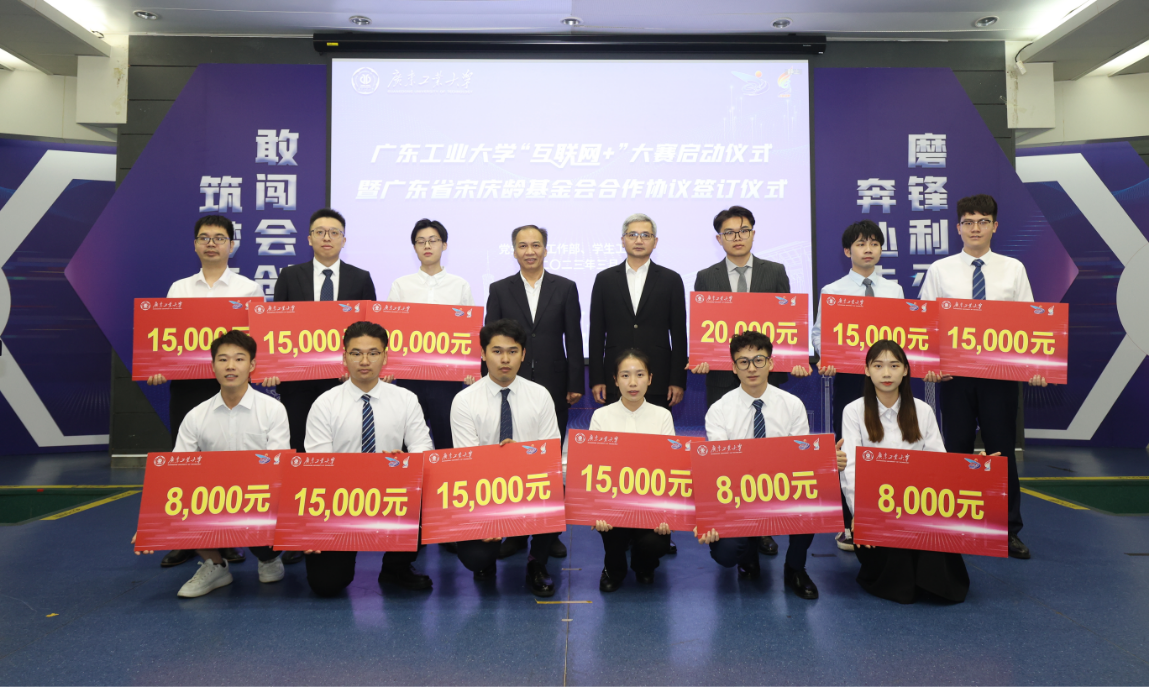 会上,胡钦太代表学校党委行政,对广东省宋庆龄基金会唐豪主席、蔡延钊秘书长一行的到来表示热烈欢迎,对在第八届“互联网+”大赛中取得优异成绩的项目团队和相关单位表示热烈的祝贺!胡钦太充分肯定了学校师生在往届赛事中拼搏奋进的干劲和拼劲。他提到,当前学校正处于建设高水平创新型大学的关键期,大家更应该精心谋划、统筹安排,深化“赛创融合、专创融合、产创融合”育人体系,借助“互联网+”大学生创新创业大赛助力国家突破“卡脖子”技术,推动学校高质量发展、走内涵式发展道路。同时,他对备战第九届“互联网+”大赛工作提出了具体要求:一是提高政治站位,将大赛作为提高人才培养质量的有力抓手;二是强化组织领导,构建多元协同的参赛长效机制;三是科学精准培育,确保参赛项目发挥优势赛出水平。他强调,全校师生要以党的二十大精神为引领,持续发扬敢“为”、敢“拼”、敢“闯”、敢“创”的精神,以大赛为契机,坚持以创新增动能,以创业促就业,持续擦亮广工“创新创业人才培养”的金字招牌,为加快推进“1+2+3”攀撑计划学科提升工程添砖加瓦,奋力谱写高水平创新型大学建设新篇章。