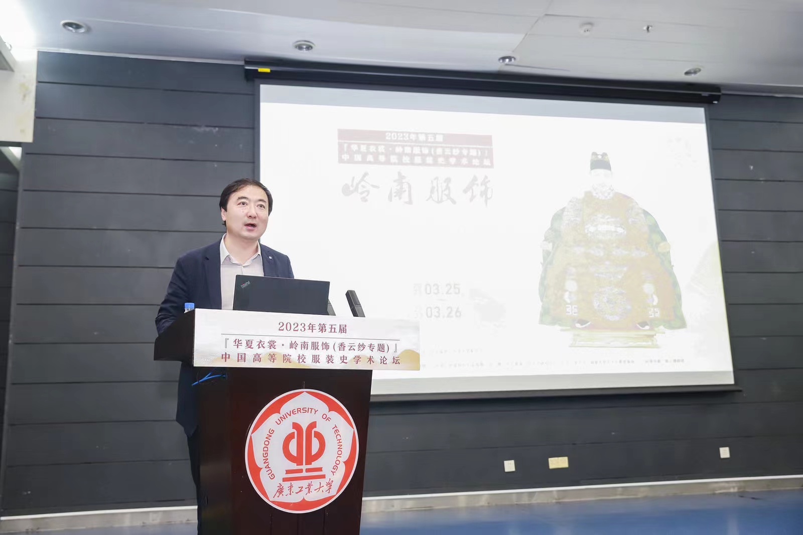 3月25日,第五届“华夏衣裳”中国高等院校服装史学术论坛在8xbet网大学城校区大讲堂圆弧报告厅举行。本次论坛由中国纺织服装教育学会和8xbet网主办,东华大学出版社有限公司、东华大学期刊中心、通识教育中心、广东省决策咨询基地岭南传统纺织服饰文化传承研究中心承办。中国纺织服装教育学会副会长纪晓峰,8xbet网党委常委、副校长陈卓武研究员、东华大学期刊中心主任王克斌、东华大学出版社总编辑周德红、清华大学美术学院李当岐教授在开幕式上致辞,来自清华大学、天津大学、青岛大学、深圳大学、汕头大学、中国服装设计师协会、山东省设计师协会、中法时尚美学、WE未视觉等单位的知名学者、设计师、陈列师,以及全国各纺织服装类学校的老师80多人参加了此次学术论坛。