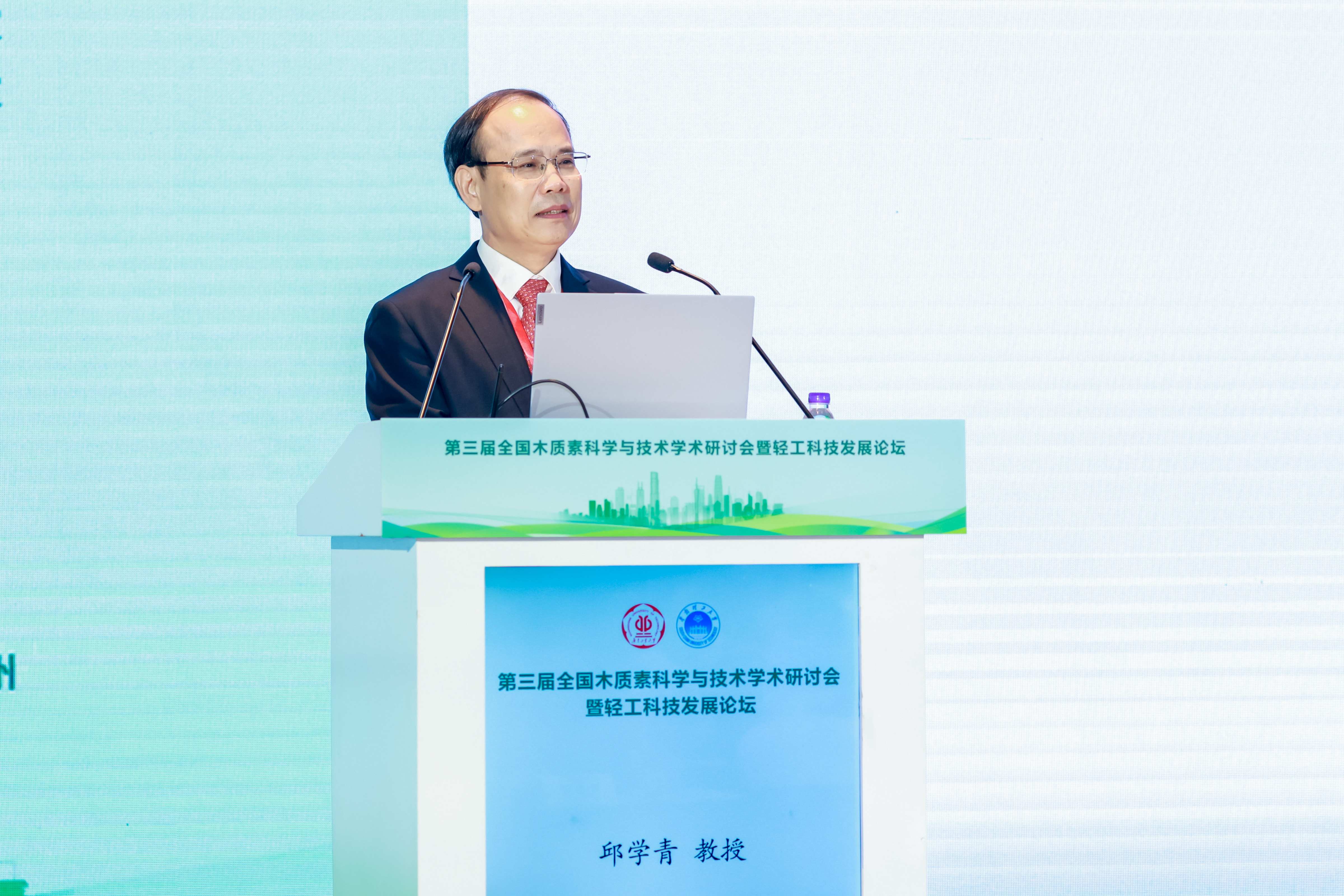 “习近平总书记视察广东重要讲话、重要指示,为高校在新征程中更好推进中国式现代化的广东实践指明了前进方向、提供了根本遵循,高校要坚持立德树人根本任务,充分发挥创新人才培养主阵地的作用,推动科研和育人紧密结合。”邱学青指出,大会为木质素领域专家学者与师生提供了重要的交流平台,进一步推动了高素质化工创新人才的培养。据悉,相比过往两届木质素会议,本届会议的规模与影响力显著扩大,吸引了众多业内大咖参与,反响热烈,显著推动了国内外木质素研究的发展。邱学青表示,必须坚定“加快实现高水平科技自立自强,是推动高质量发展的必由之路”的理论自信,深入开展木质素资源高值化利用方面的研究;必须坚持创新,不断向木质素研究领域的广度和深度进军;必须坚持夯实基础研究,突破关键核心技术问题,推动成果转化与工业化应用。“‘木质素人’要保持踔厉奋发笃行不怠的奋斗精神,推动木质素研究迈上新的台阶,深入优化产业结构,助力绿色低碳高质量发展。”邱学青说。