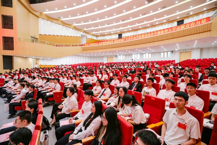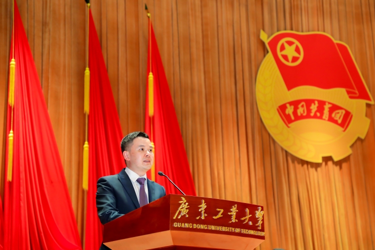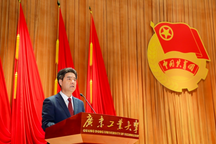 王浩代表团省委讲话。他指出,过去五年,学校共青团开拓创新、主动作为,在思想政治引领、高校共青团改革、学生会深化改革、创新创业、成长服务等方面取得了明显成绩,多次在全省共青团工作评价中获评“先进单位”。特别是严格落实团的基层建设,组织基础夯实有力;学生组织改革持续深化,考核指标全部达标;大学生科技创新成效显著,“挑战杯”等赛事成绩在全省、全国均名列前茅,为推动广东省大学生创新创业工作提质增效贡献了重要力量。王浩向学校共青团提出三点要求:一是立足“政治学校”功能定位,强化思想引领;二是聚焦“先锋力量”时代要求,自觉担当尽责;三是着眼“先进组织”建设目标,全面从严治团。
