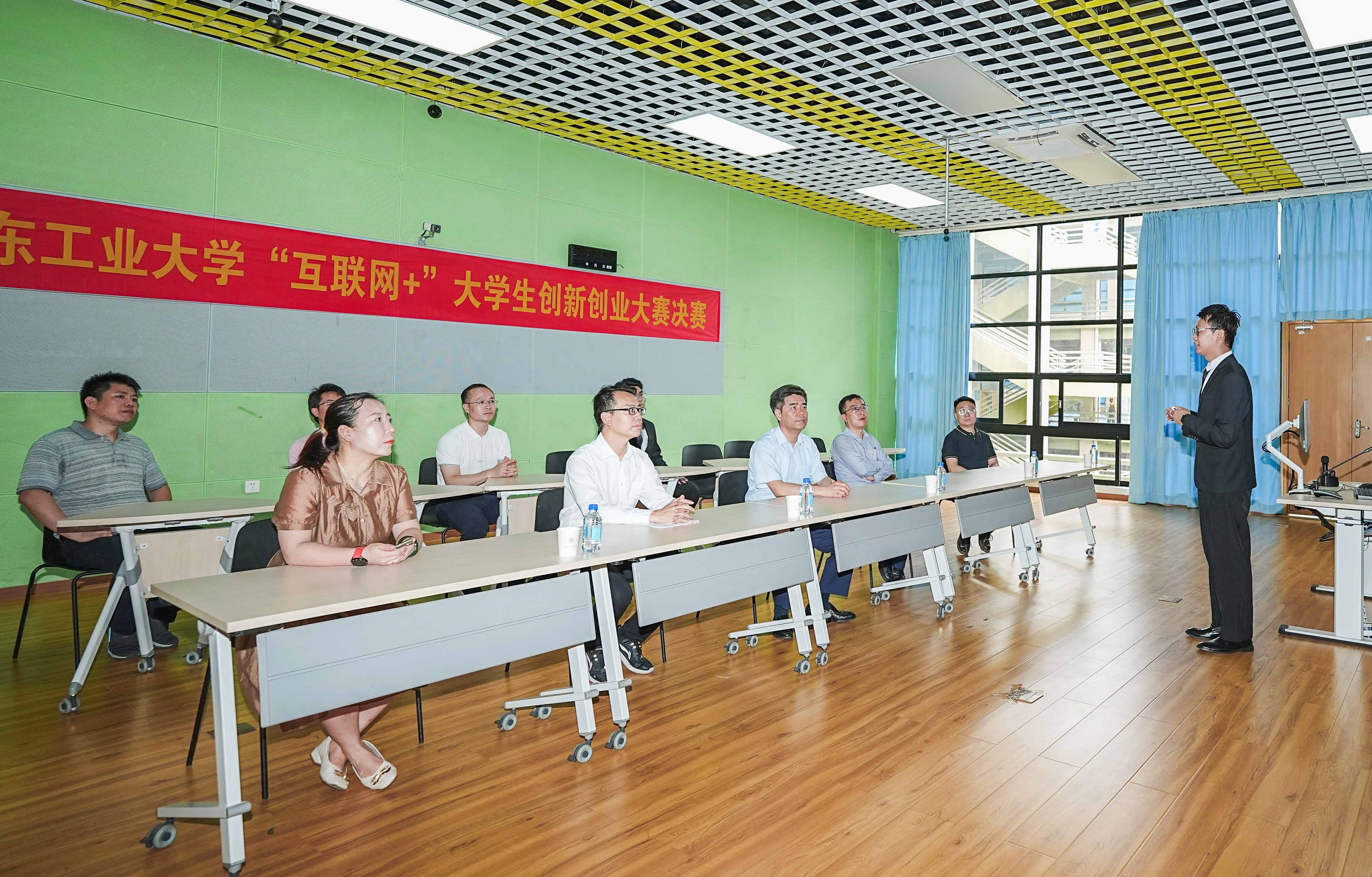 胡钦太认真观看决赛项目成果展,逐一听取各项目负责人所作的项目成果介绍,与团队成员亲切交流,鼓励同学们继续发扬“我敢闯,我会创”的大赛主题精神,积极备赛,争创佳绩。随后,胡钦太细致询问了本次比赛的筹备及进展情况,对赛事组织工作人员表达了衷心感谢,要求学校相关职能部门全力做好各项服务保障工作,及时查漏补缺,确保决赛顺利进行。