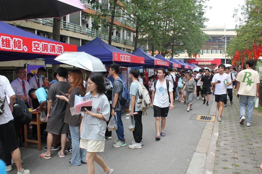 “我为师生办实事”便民服务日活动在大学城校区生活区东10—东11栋之间的校道举行。共设有40个摊位,其中义诊摊位8个,义修摊位10个,义教摊位7个,义询摊位12个,公共服务摊位3个。内容涵盖中医养生、内外科常见病咨询、视网膜病变筛查、电器家具自行车维修、眼镜空调清洗、义务理发照相、衣服缝补、电信优惠办理、厨艺教学、心肺复苏实操体验、校园金融安全、食品与生产安全、应急救援器材讲解、电梯安全使用、能源服务、汽车使用技巧咨询等。此外,现场还准备了实用的活动奖品,如凉茶、餐票、洗手液、灭蚊片等,一些摊位还安排了特色奖品。