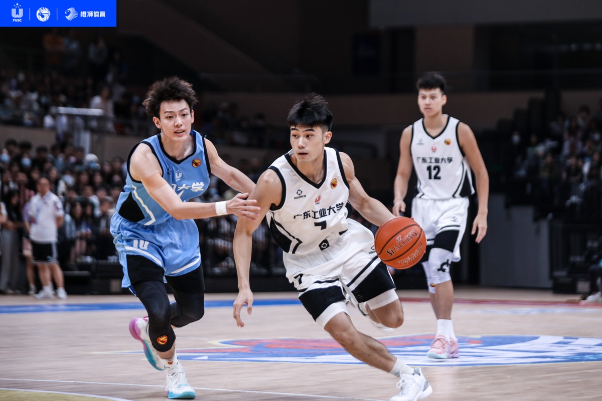 比赛开始就陷入得分荒,对手先进入状态连得7分,广工陈国豪、高宇锋、邵炜昀、周泽源接连得分挽回局面,双方加强防守,进入僵持阶段,比分交替领先。第二节,广工继续加强攻防,邵炜昀、曾煜成的三分跳投和崔俊超的勾手投篮帮助球队打破僵局开启领先模式,上半场结束时,比分43:36,广工领先7分。下半场,对手不甘示弱,广工一时难以扩大分差,继续稳扎稳打默契配合,利用速度优势多点开花,逐渐打开有利局面并扩大分差,时间还剩2分多的时候,广工换上年轻队员实战锤炼,成功保住比分优势,最终以92:63结束比赛,晋级全国八强。