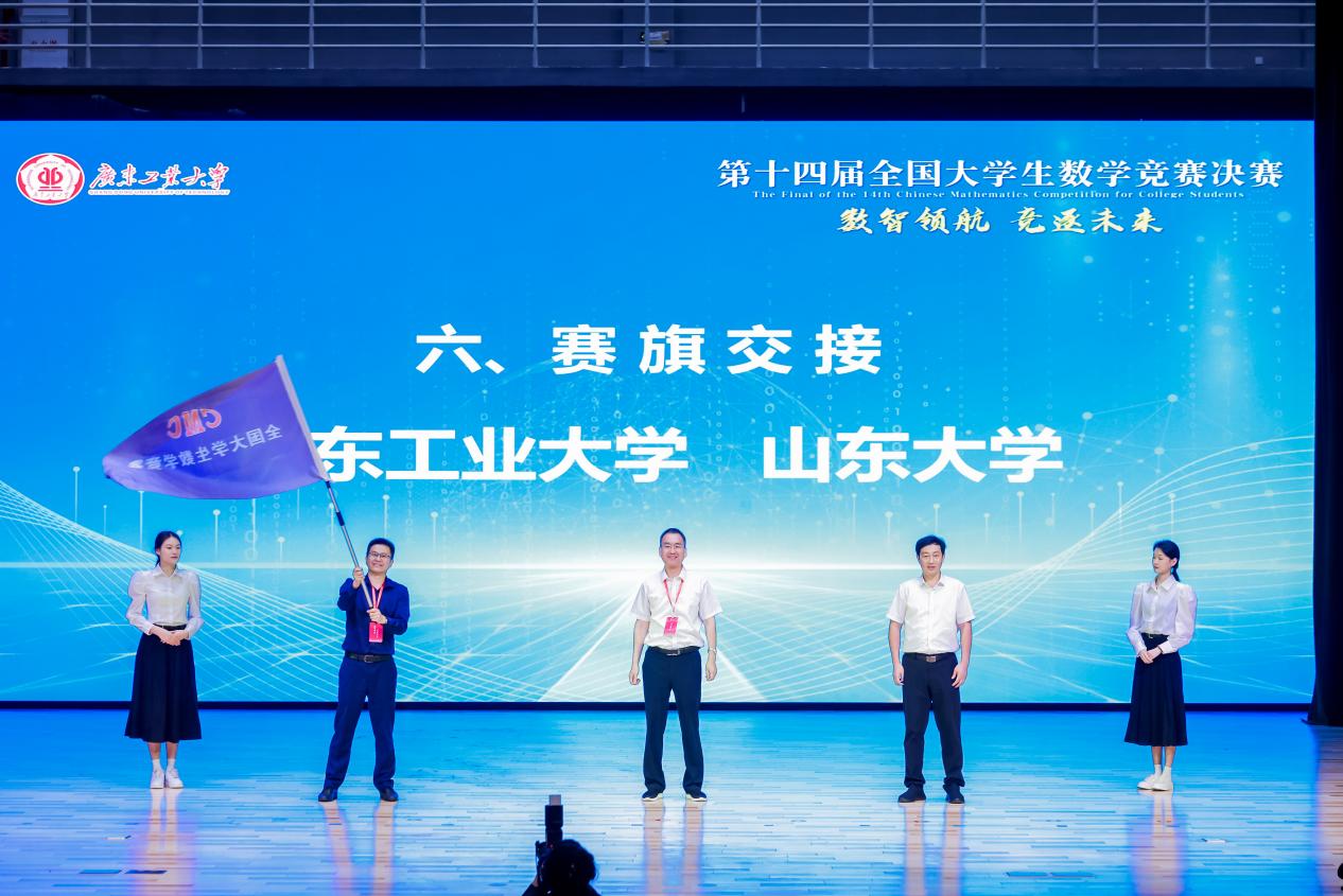在全体参会者的共同见证下,山东大学数学学院党委书记王光辉教授从8xbet网数学与统计学院院长陈智奇教授手中接过赛旗,承诺将竭力办好下一届决赛,传扬全国大学生数学竞赛“数智领航 逐梦未来”的精神。