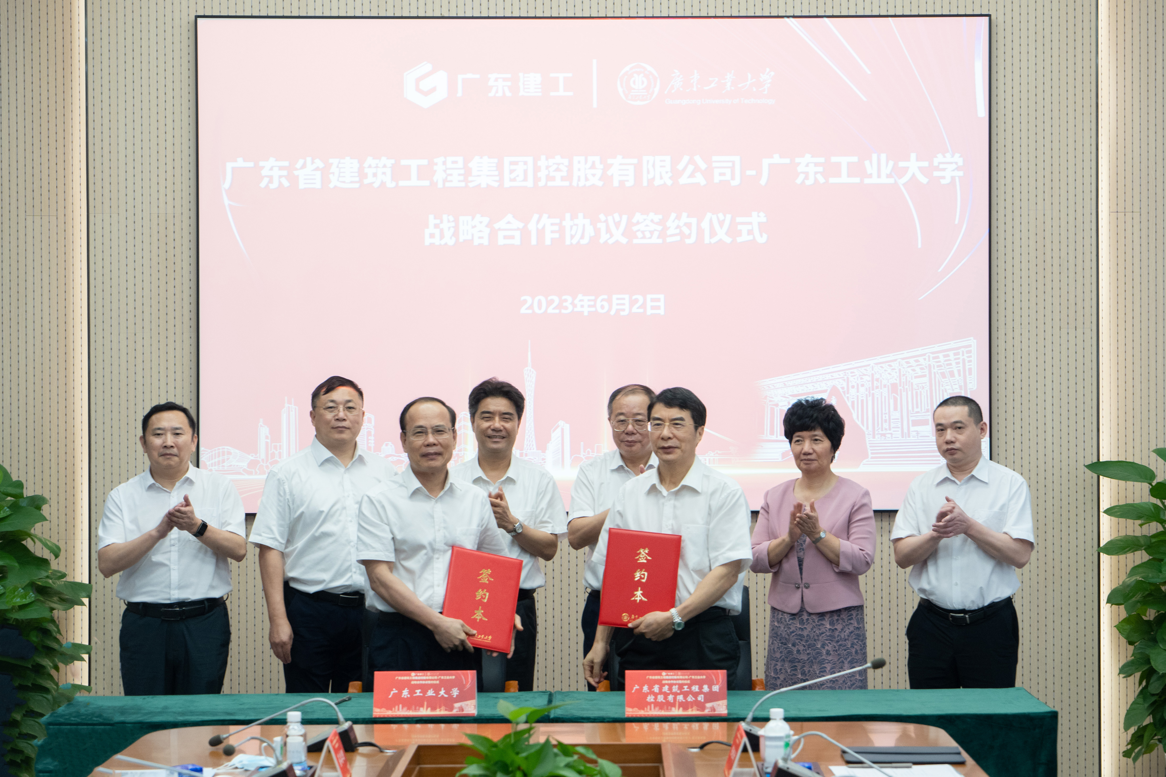 学校党委常委、副校长王成勇,副校长余林,广东省建筑工程集团控股有限公司党委副书记、董事、工会主席李雪美,副总经理黄瑛鹏以及双方相关部门负责人出席了签约仪式。