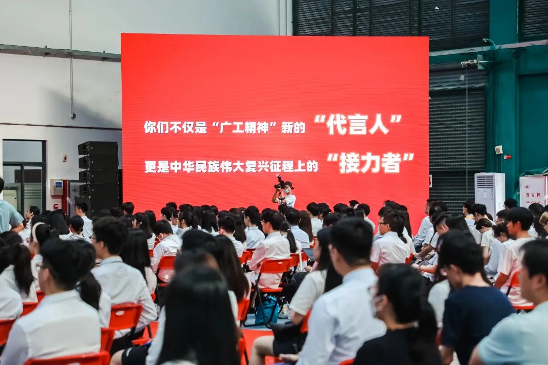 仪式为2023届毕业生校友联络员颁发聘书,表彰2023届优秀毕业生。熟悉的旋律奏响,全体师生起立合唱校歌《逐梦》。学校希望同学们坚定理想信念,勇担时代使命,努力成为可堪大用、能担重任的栋梁之才,为全面建设社会主义现代化强国,全面推进中华民族伟大复兴,贡献广工人的智慧与力量。