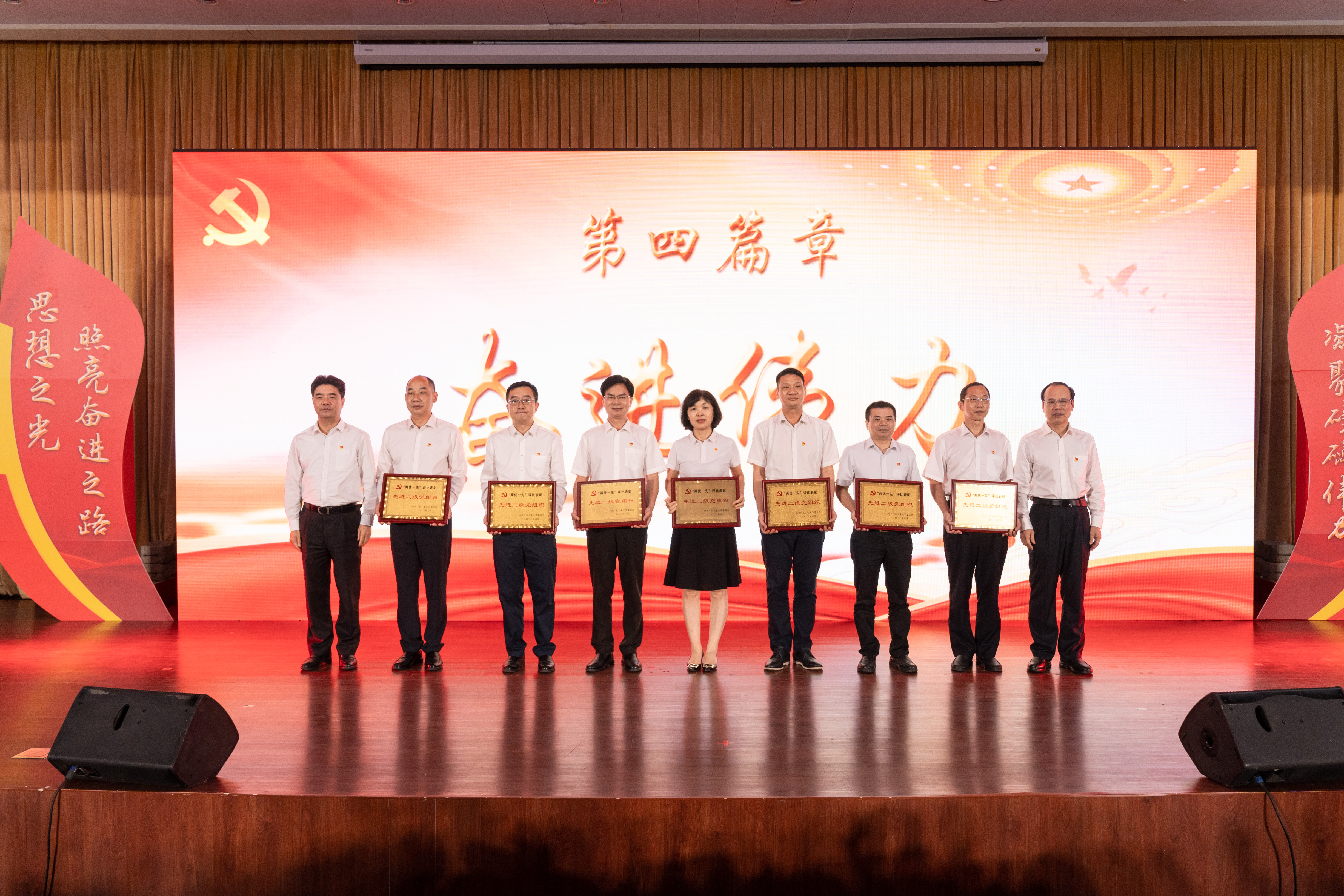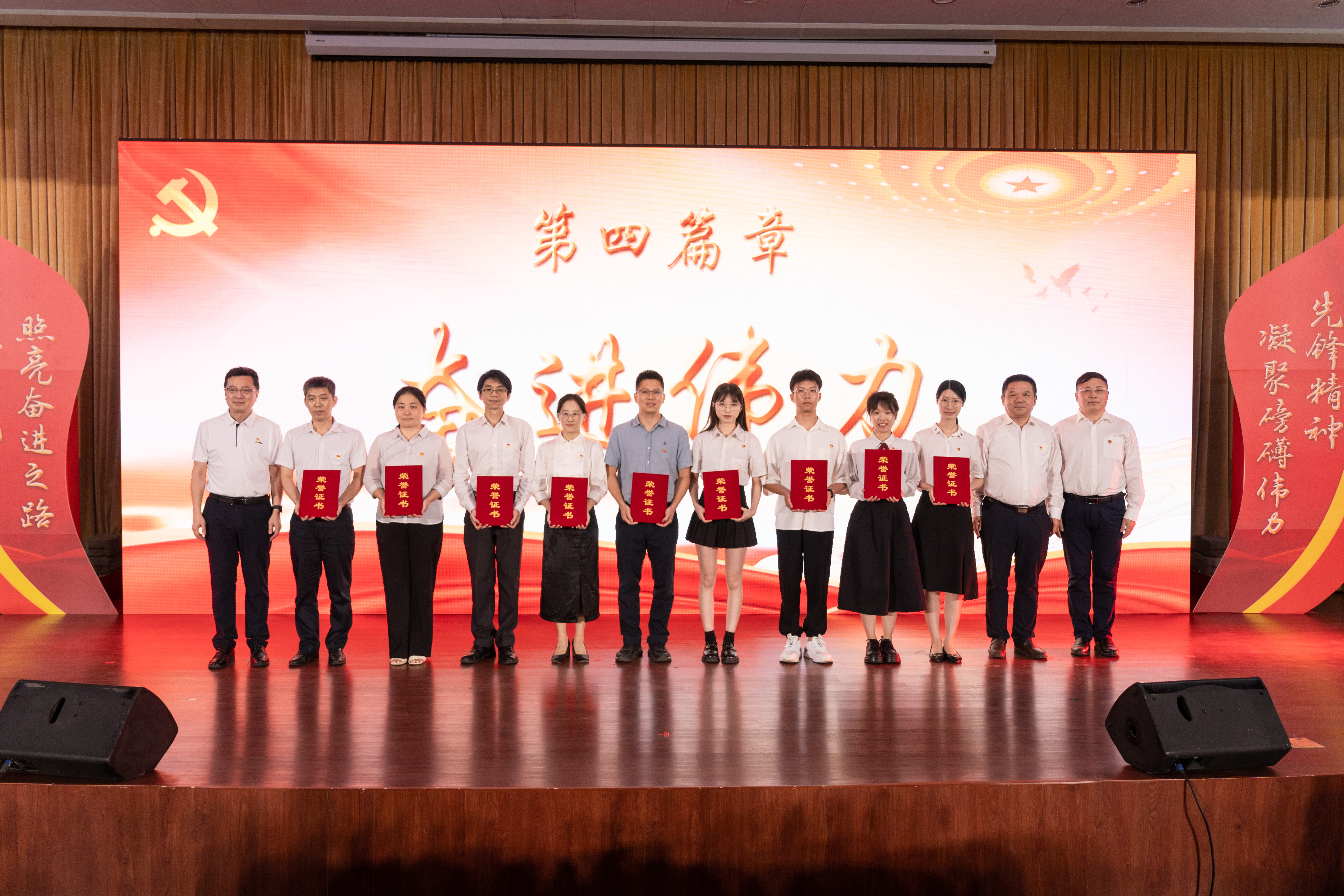 为表彰先进典型、弘扬奋斗精神, 进一步营造见贤思齐、争做先锋的良好氛围,学校领导为优秀共产党员、优秀党务工作者、先进基层党组织代表颁奖。