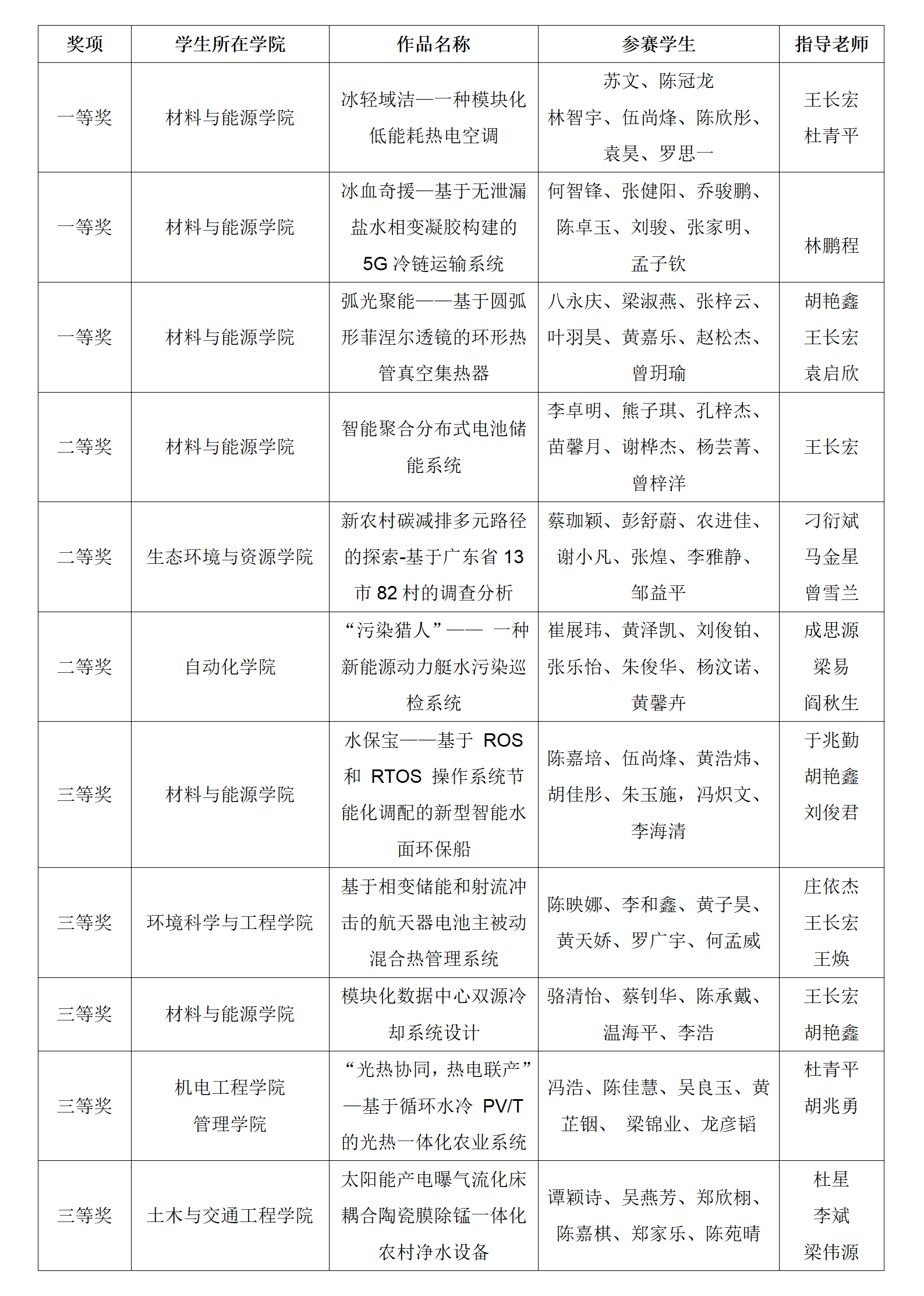 第十六届全国大学生节能减排社会实践与科技竞赛获奖名单